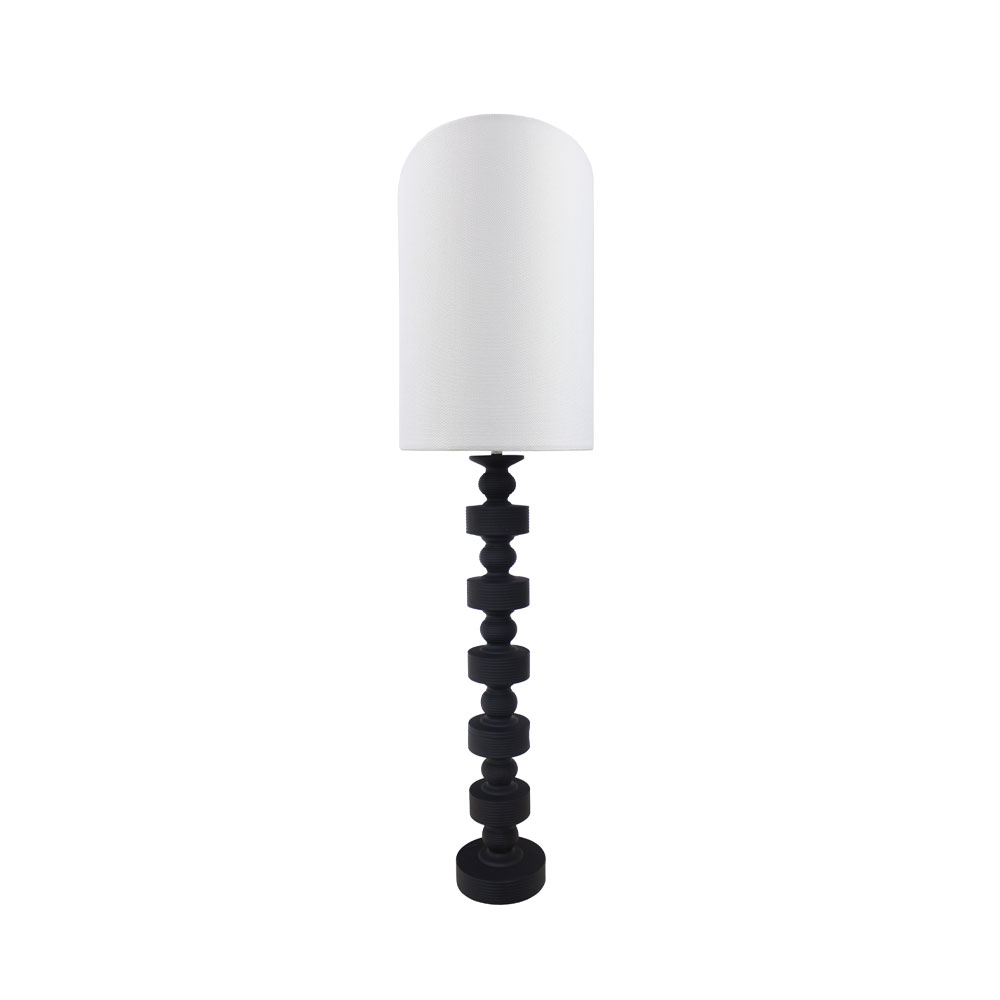 Το JASIEL είναι ένα statement φωτιστικό δαπέδου με βάση polyresin σε μαύρη απόχρωση και λευκό λινό καπέλο. Καθαρή γεωμετρία, υψηλή αισθητική, και έντονη αντίθεση χρωμάτων, ιδανικό για μοντέρνους minimal χώρους ή για να δώσει χαρακτήρα σε ένα ουδέτερο περιβάλλον.