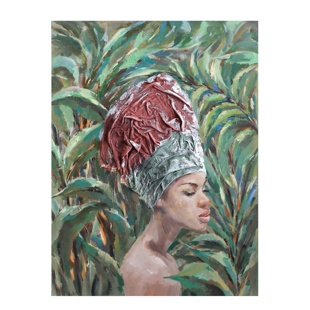 Ο πίνακας Jungle Lady σε καμβά, με πολυχρωμίες και τροπικό ύφος, δημιουργεί μία ζωντανή και εξωτική ατμόσφαιρα στον χώρο. Οι πολυχρωμίες του και το τροπικό του ύφος, δημιουργούν μία ζωντανή και εξωτική ατμόσφαιρα στον χώρο. Οι έντονες αντιθέσεις χρωμάτων και το αίσθημα της άγριας ομορφιάς της ζούγκλας προσθέτουν μία αίσθηση φυσικής πολυτέλειας. Αυτός ο πίνακας είναι ιδανικός για να δημιουργήσει μία εντυπωσιακή και χαλαρωτική ατμόσφαιρα σε χώρους όπως το σαλόνι, το υπνοδωμάτιο ή ακόμη και σε εξωτερικούς χώρους με τροπική διακόσμηση.