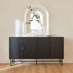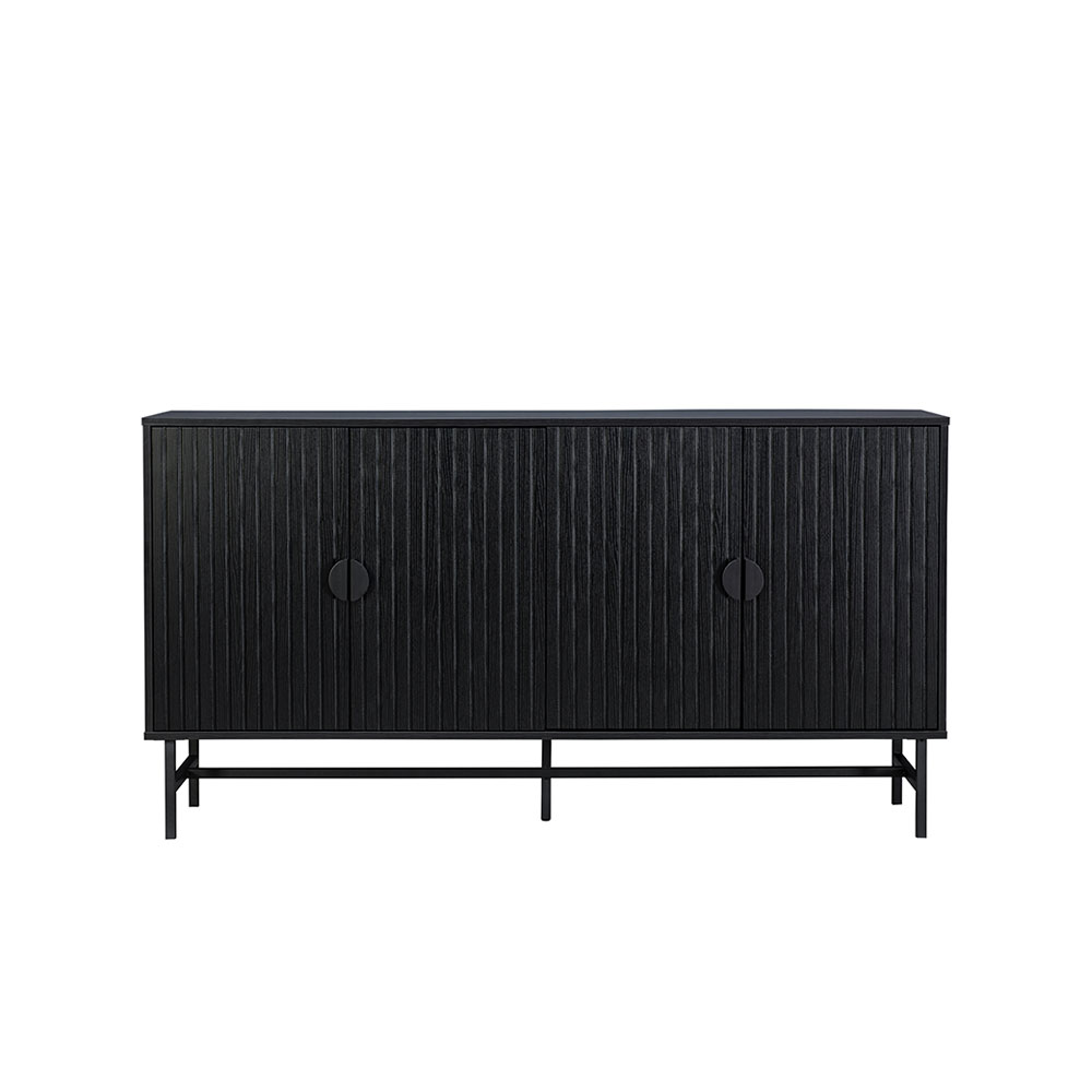 Ο μπουφές Kimono συνδυάζει τη διαχρονική κομψότητα με τον μοντέρνο σχεδιασμό, δημιουργώντας ένα εντυπωσιακό έπιπλο που αναδεικνύει κάθε χώρο. Η επένδυσή του από μελαμίνη σε μαύρη απόχρωση αποπνέει μυστήριο και φινέτσα, ενώ οι ανάγλυφες λεπτομέρειες προσδίδουν έναν διακριτικό χαρακτήρα πολυτέλειας. Η μαύρη μεταλλική βάση ολοκληρώνει την αισθητική του με industrial πινελιές, προσφέροντας παράλληλα σταθερότητα και στιβαρότητα. Ο μπουφές Kimono είναι η ιδανική επιλογή για σαλόνια και τραπεζαρίες που θέλουν να ξεχωρίσουν με στυλ και λειτουργικότητα.