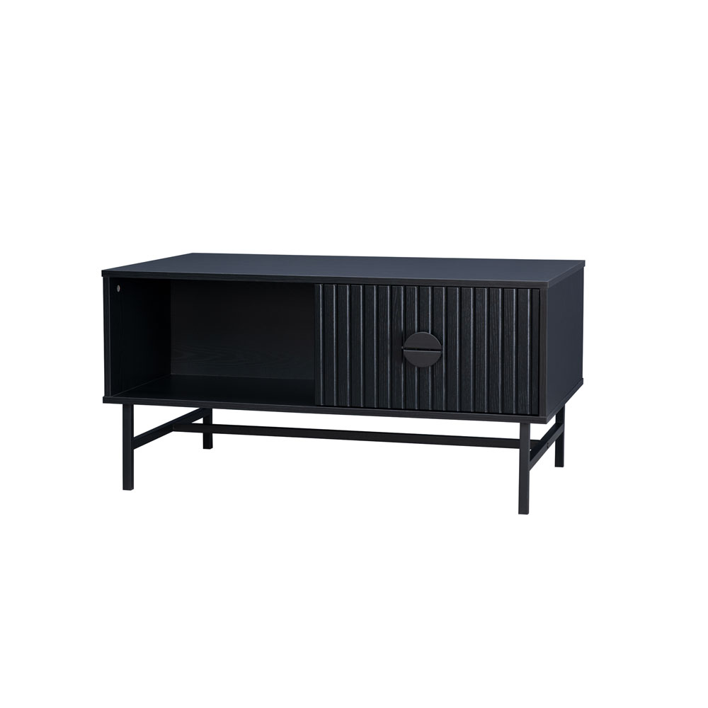 Το τραπεζάκι σαλονιού Kimono θα προσθέσει μια μοντέρνα και κομψή πινελιά στον χώρο σας. Διαθέτει έναν ανθεκτικό μεταλλικό σκελετό που προσφέρει σταθερότητα και αντοχή. Η επιφάνεια και το συρτάρι του είναι κατασκευασμένα από υψηλής ποιότητας υλικά σε μαύρο χρώμα, προσδίδοντας μια αίσθηση πολυτέλειας και κομψότητας. Ο μοντέρνος σχεδιασμός του συρταριού με τις κάθετες γραμμές και την μοναδική λαβή προσθέτουν μια ιδιαίτερη αισθητική πινελιά. Το τραπεζάκι Kimono είναι εξοπλισμένο με ένα ευρύχωρο συρτάρι, ιδανικό για την αποθήκευση αντικειμένων που θέλετε να κρατήσετε εκτός οπτικού πεδίου, όπως τηλεχειριστήρια, περιοδικά ή άλλα μικροαντικείμενα. Ο ανοιχτός χώρος κάτω από την επιφάνεια του τραπεζιού προσφέρει επιπλέον αποθηκευτικό χώρο για βιβλία, διακοσμητικά ή άλλα αντικείμενα.