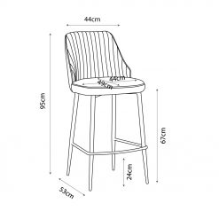 Το σκαμπό Bar King είναι μια κομψή προσθήκη σε κάθε σύγχρονο χώρο, συνδυάζοντας στυλ και άνεση. Ο σκελετός του από μαύρο μέταλλο εξασφαλίζει ανθεκτικότητα και σταθερότητα, ενώ το κάθισμα και η πλάτη είναι επενδυμένα με πολυτελές ύφασμα βελούδο σε μαύρη απόχρωση, προσφέροντας τόσο κομψότητα όσο και άνεση. Ο κάθετος ριγέ σχεδιασμός προσθέτει υφή και μια πινελιά εκλεπτυσμένου στυλ, κάνοντάς το ιδανικό για μπαρ, νησίδες κουζίνας ή σύγχρονες τραπεζαρίες. Με τα υψηλής ποιότητας υλικά και τον διαχρονικό σχεδιασμό του, το σκαμπό Bar King είναι τόσο πρακτικό όσο και κομψό, αναβαθμίζοντας το εσωτερικό σας με τη σύγχρονη αίσθησή του.
