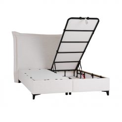Κρεβάτι με αποθηκευτικό χώρο! Διαθέτει αεριζόμενο, αντιμικροβιακό, ευρύχωρο αποθηκευτικό χώρο και 4 αμορτισέρ ασφαλείας διπλής ενέργειας, που ανασηκώνουν εύκολα το στρώμα. Ειδική σχεδίαση και κατασκευή του κρεβατιού για απόλυτη απουσία τριγμών. Μεταλλικός σκελετός ηλεκτροστατικής βαφής, εξαιρετικής αντοχής, αντικραδασμικός. Πλαϊνά από οικολογική μελαμίνη, επενδυμένα με αφρώδες υλικό ύφασμα . Απόλυτα επίπεδη και ενιαία επιφάνεια, ιδανική για κάθε τύπο στρώματος .Η επιφάνεια του υποστρώματος είναι καλυμμένη με αντιολισθητικό ύφασμα για την καλύτερη συγκράτηση του στρώματος. Ο πάτος είναι από μελαμίνη πάχους 8mm και φέρει αεραγωγούς. Ψηλά ποδαράκια για εύκολο καθάρισμα.