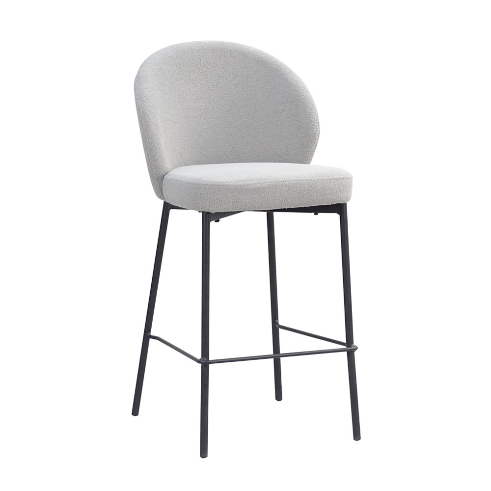 Το σκαμπό Bar Lune είναι μια εκλεπτυσμένη επιλογή για κάθε μοντέρνο χώρο. Ο σκελετός του από μαύρο μέταλλο εξασφαλίζει ανθεκτικότητα και στιβαρότητα, ενώ η επένδυση της πλάτης και του καθίσματος από ύφασμα μπουκλέ σε γκρι απόχρωση προσφέρει μία αίσθηση απαλότητας και κομψότητας. Η στρογγυλεμένη πλάτη του προσφέρει εξαιρετική άνεση, ενώ το διακριτικό και μοντέρνο σχέδιο το καθιστά ιδανικό για μπαρ, νησίδες κουζίνας ή χώρους διαμονής. Με την κομψότητα και την ποιότητά του, το Bar Lune αναβαθμίζει οποιονδήποτε χώρο με μια σύγχρονη και φρέσκια αίσθηση.