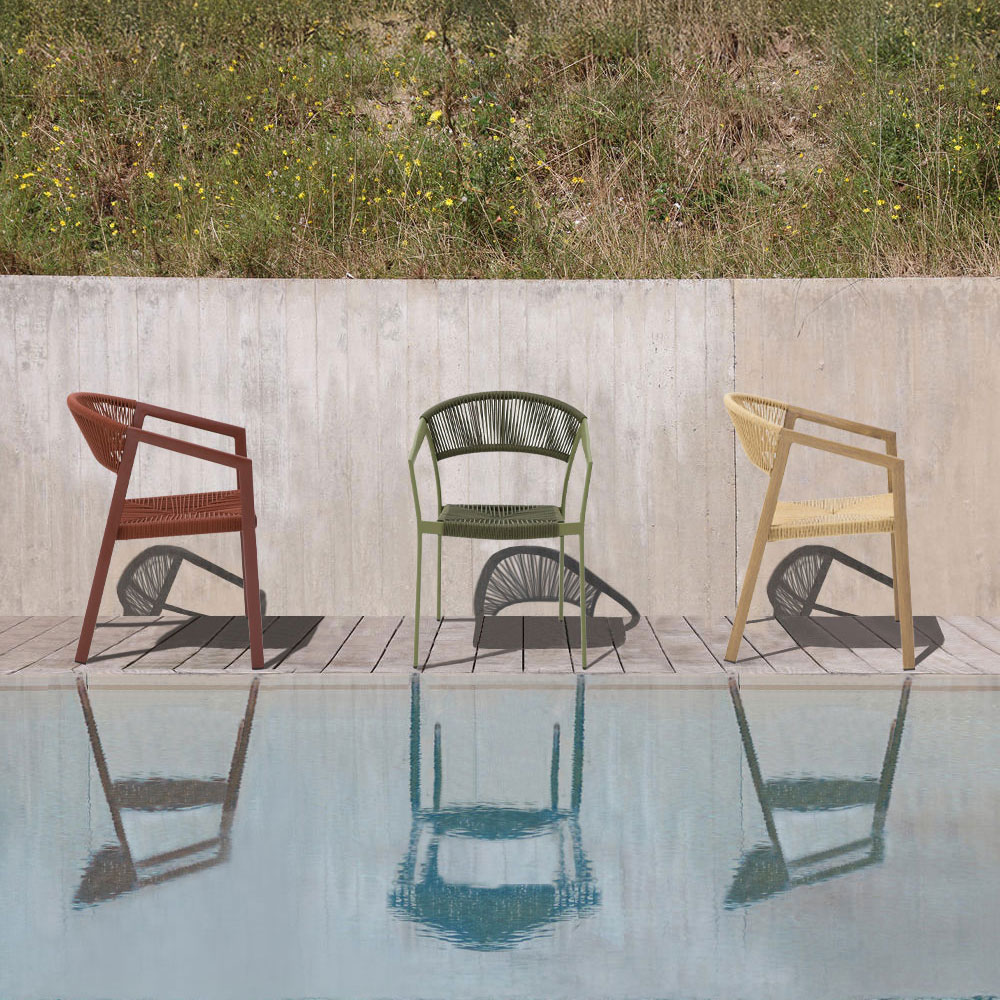 Η καρέκλα Magic συνδυάζει την κομψότητα με τη λειτουργικότητα, προσφέροντας έναν μοναδικό σχεδιασμό που ταιριάζει σε κάθε σύγχρονο χώρο. Η επένδυση από PE Round Woven, ένα συνθετικό υλικό από πολυαιθυλένιο με κυκλική ύφανση, σε εκλεπτυσμένη λαδί απόχρωση, χαρίζει φυσική αισθητική και αντοχή. Ο σκελετός από αλουμίνιο σε αντίστοιχη λαδί απόχρωση, βαμμένος με ηλεκτροστατική μέθοδο, εξασφαλίζει μακροχρόνια αντοχή στις καιρικές συνθήκες και διατηρεί τη λάμψη του. Ιδανική για εξοικονόμηση χώρου, η καρέκλα Magic είναι στοιβαζόμενη, καθιστώντας τη πρακτική επιλογή για κάθε περιβάλλον, είτε εσωτερικό είτε εξωτερικό. Με κομψότητα και ανθεκτικότητα, αποτελεί ιδανική προσθήκη στη συλλογή σας.