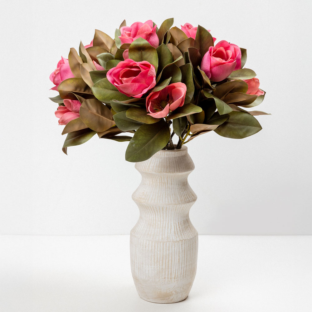 Το τεχνητό λουλούδι MAGNOLIA 83cm σε φούξια απόχρωση είναι μια εντυπωσιακή επιλογή για έντονες και μοντέρνες διακοσμητικές συνθέσεις. Το ζωηρό του χρώμα φέρνει ενέργεια και δυναμισμό σε κάθε χώρο, ενώ η ρεαλιστική κατασκευή από πολυεστέρα εξασφαλίζει φυσική όψη και υφή. Ιδανικό για statement ανθοσυνθέσεις, βάζα και βιτρίνες που θέλουν να ξεχωρίζουν, προσφέροντας στυλ και προσωπικότητα στη διακόσμηση.