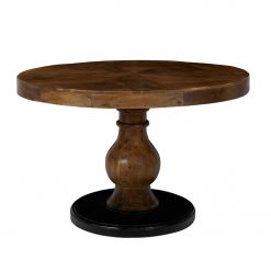Το τραπέζι MAGNOLIA συνδυάζει ρετρό κομψότητα και φυσική ζεστασιά, με ιδιαίτερη έμφαση στη γλυπτική του βάση. Κατασκευασμένο από ξύλο mango σε φυσική απόχρωση, διαθέτει καλαίσθητη, κυρτή κεντρική στήριξη και στρογγυλή επιφάνεια 120 cm. Η μαύρη κυκλική βάση προσθέτει σταθερότητα και ενισχύει τον εκλεπτυσμένο χαρακτήρα του. Ένα τραπέζι φαγητού που ξεχωρίζει.