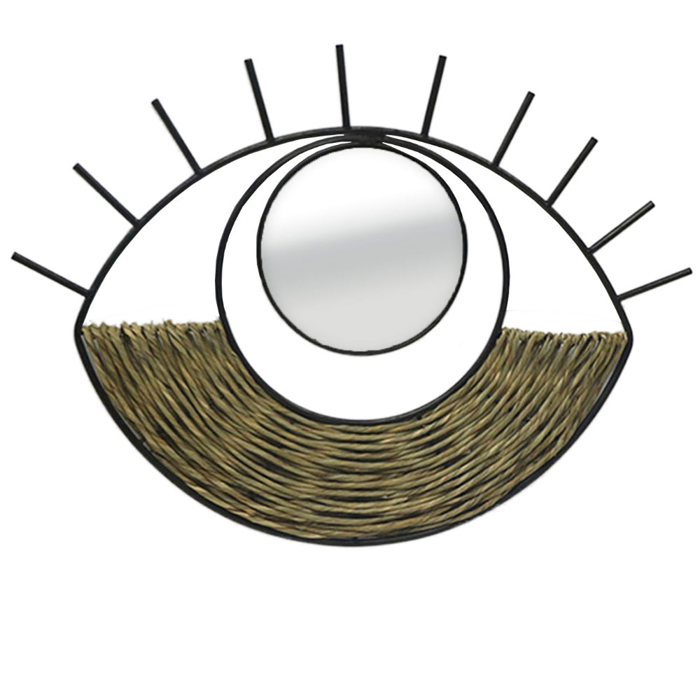 Ο καθρέπτης Mati είναι μια ξεχωριστή πρόταση που συνδυάζει μοντέρνο σχεδιασμό με φυσικά υλικά. Το πλαίσιο από μαύρο μέταλλο προσδίδει δυναμισμό και σύγχρονη αισθητική, ενώ οι λεπτομέρειες από seagrass χαρίζουν μια ζεστή, φυσική πινελιά. Εμπνευσμένος από το σχήμα του ματιού, ο Mati αποτελεί ένα ιδιαίτερο διακοσμητικό στοιχείο που προσφέρει μοναδικότητα και στιλ σε κάθε χώρο. Ιδανικός για όσους επιθυμούν να προσθέσουν έναν τόνο δημιουργικότητας και φυσικής γοητείας στη διακόσμησή τους.