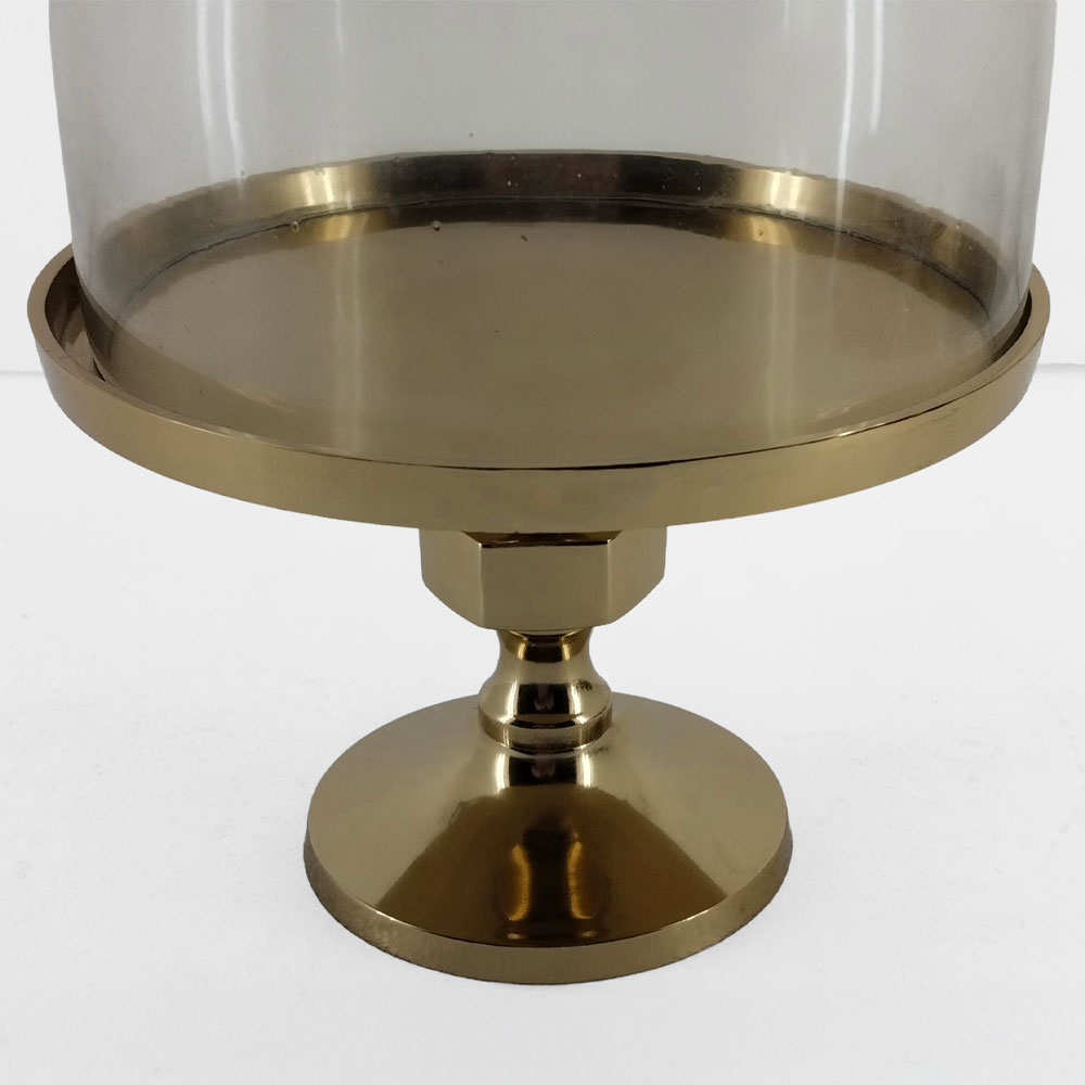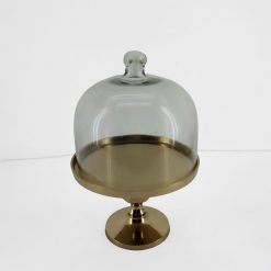 Το MOLDE είναι ένα εντυπωσιακό κουπ με καπάκι, με συνδυασμό διάφανου γυαλιού και χρυσής βάσης αλουμινίου, σε διαστάσεις 24?24?37. Το ύψος του το κάνει ιδανικό για προβολή γλυκισμάτων ή διακοσμητικών στοιχείων σε τραπέζι μπουφέ ή βιτρίνα. Η καθαρή του γραμμή προσθέτει πολυτέλεια και κομψότητα στον χώρο. Ταιριάζει άψογα σε boutique καταστήματα, cafes ή luxury dining setups.