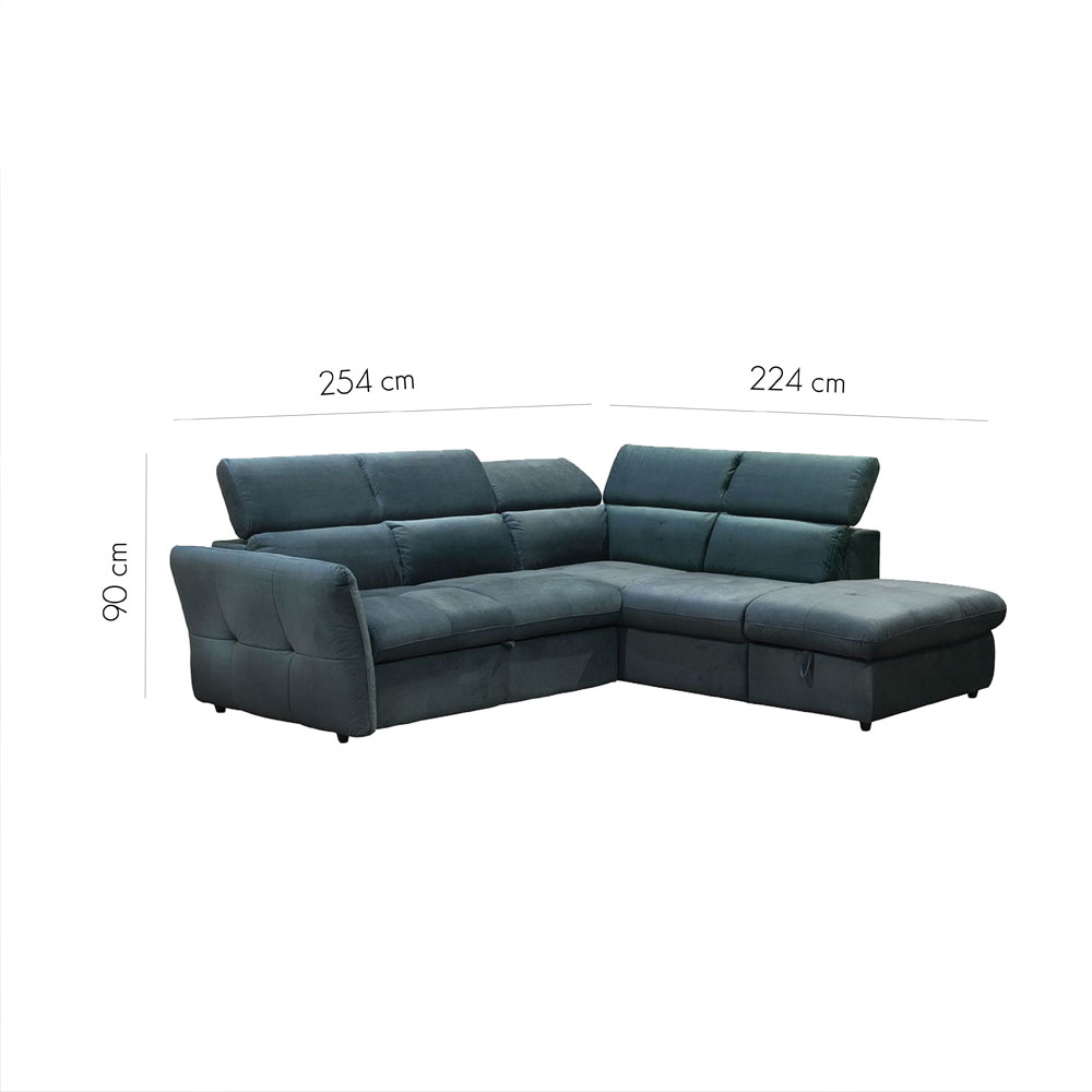 Ανακαλύψτε την απόλυτη κομψότητα και λειτουργικότητα με τον καναπέ κρεβάτι Monserat. Αυτός ο εκλεπτυσμένος καναπές, με την δεξιά γωνία του και το υψηλής ποιότητας ύφασμα Chenille σε μοντέρνα πετρόλ απόχρωση, προσθέτει έναν αέρα πολυτέλειας και άνεσης σε κάθε χώρο. Η προσεγμένη κατασκευή και οι πρακτικές του δυνατότητες τον καθιστούν ιδανική επιλογή για κάθε σπίτι. Το ύφασμα με την τεχνολογία Easy Clean τον καθιστούν ιδανικό για καθημερινή χρήση. Καθαρίζεται εύκολα, διατηρώντας τον καναπέ σας πάντα σε άριστη κατάσταση. Η δυνατότητα μετατροπής σε κρεβάτι προσφέρει ευελιξία και επιπλέον χώρο για τους επισκέπτες. Επιπλέον, ο ενσωματωμένος αποθηκευτικός χώρος στο σκαμπώ σας επιτρέπει να κρατάτε τον χώρο σας τακτοποιημένο, ενώ τα ανακλινόμενα προσκέφαλα προσφέρουν την απόλυτη άνεση.