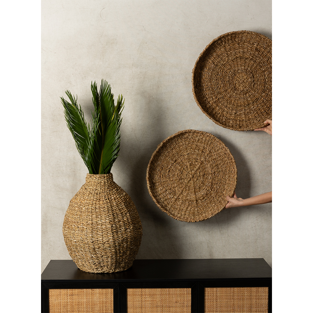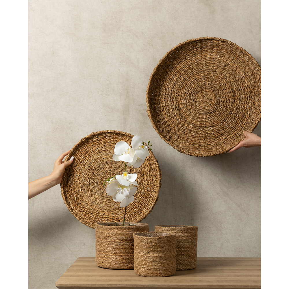 Ο διακοσμητικός δίσκος NEREA (σετ 3 τεμαχίων) από φυσικό seagrass σε απόχρωση NATURAL, είναι ιδανικός για coffee tables, μπουφέδες ή τραπέζια τραπεζαρίας. Με διάμετρο 55 cm και ύψος 8 cm, προσθέτει υφή και ζεστασιά στη διακόσμηση. Ο μεταλλικός σκελετός προσφέρει σταθερότητα και ανθεκτικότητα.