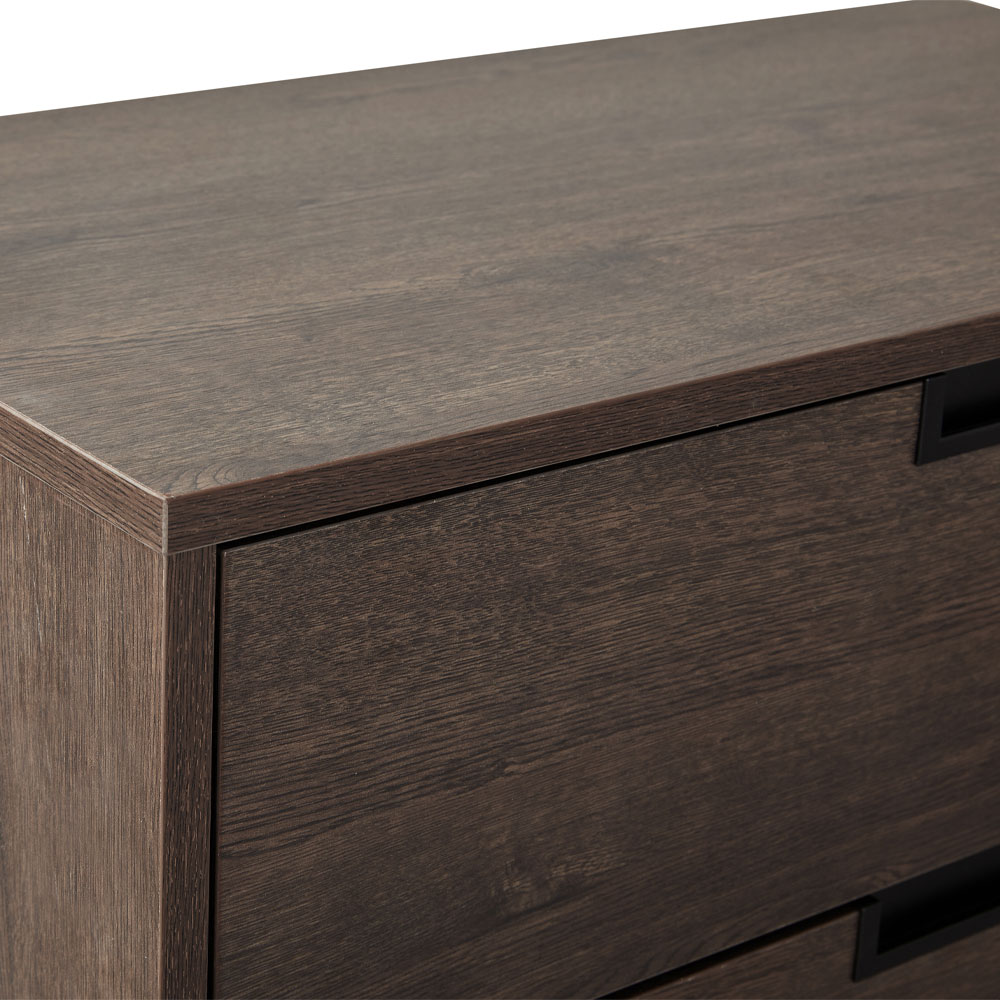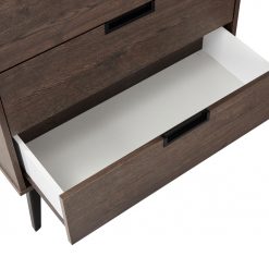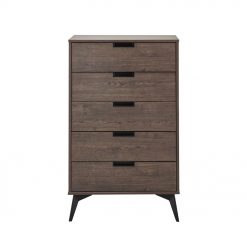Η συρταριέρα Nuez είναι ο ιδανικός συνδυασμός λειτουργικότητας και διαχρονικού design. Κατασκευασμένη από υψηλής ποιότητας μελαμίνη σε κομψή καρυδί απόχρωση, προσφέρει πέντε ευρύχωρα συρτάρια για την αποθήκευση των αντικειμένων σας. Οι λεπτομέρειες με τα μαύρα μεταλλικά πόδια ενισχύουν την αισθητική της, καθιστώντας την ιδανική επιλογή για μοντέρνους και κλασικούς χώρους. Απολαύστε πρακτικότητα και στυλ με τη συρταριέρα Nuez.