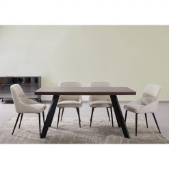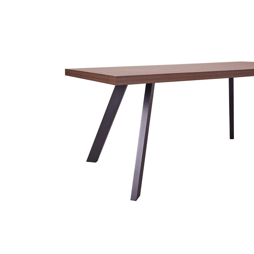 Το τραπέζι Ville είναι μια κομψή και λειτουργική επιλογή που συνδυάζει μοντέρνο σχεδιασμό και ανθεκτικά υλικά. Η επιφάνειά του είναι κατασκευασμένη από μελαμίνη σε απόχρωση καρυδιάς, προσφέροντας τη φυσική αίσθηση του ξύλου με υψηλή αντοχή στη φθορά και τη χρήση. Η μαύρη μεταλλική βάση του χαρίζει σταθερότητα και ανθεκτικότητα, ενώ ο δυναμικός σχεδιασμός των ποδιών προσθέτει μια σύγχρονη industrial αισθητική. Ιδανικό για την τραπεζαρία ή τον επαγγελματικό σας χώρο, το Ville συνδυάζει διαχρονικό στυλ και πρακτικότητα, δημιουργώντας ένα κομψό σημείο συνάντησης για κάθε περίσταση.
