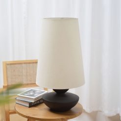 Το επιτραπέζιο φωτιστικό OMONDI (27x27x66cm) αποτελεί εντυπωσιακή επιλογή λόγω του μεγάλου ύψους και της sculptural βάσης από resin. Το μπεζ λινό καπέλο δημιουργεί cozy warm lighting, ιδανικό για σαλόνια, υπνοδωμάτια και luxury AirBnB χώρους. Η έντονη αντίθεση μαύρου–μπεζ προσφέρει modern high-end αισθητική. Διακοσμητικό κομμάτι με εμπορικότητα και design value.