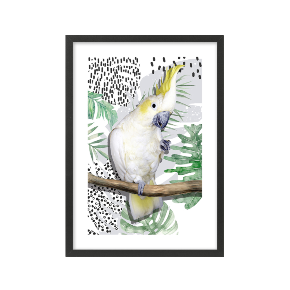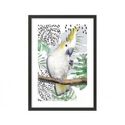 Σετ 2 πινάκων OMU με απεικονίσεις εξωτικών παπαγάλων (κοκατού και μακάο), ιδανικά για να δώσουν χρώμα και φρεσκάδα σε κάθε χώρο. Τα έντονα χρώματα και το jungle μοτίβο αναδεικνύονται μέσα από κομψή μαύρη MDF κορνίζα. Ιδανικά για tropical, μοντέρνους ή παιδικούς χώρους.
