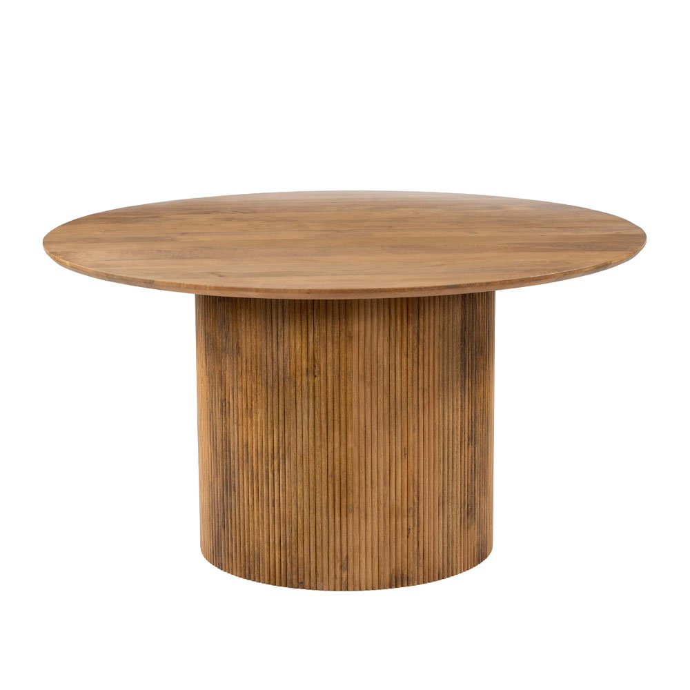 Το στρογγυλό τραπέζι ORGANIC BITTER εντυπωσιάζει με την μορφή του και την πλούσια υφή του ξύλου mango σε απόχρωση καρυδί. Ο κυλινδρικός του όγκος χωρίς εμφανή βάση χαρίζει στο κομμάτι γλυπτική αίσθηση, προσδίδοντας φυσικότητα και μοναδικό χαρακτήρα σε κάθε τραπεζαρία. Με διάμετρο 140 cm, φιλοξενεί άνετα έως και 6 άτομα. Ένα τραπέζι που αναδεικνύει την αυθεντικότητα των υλικών και το απλό design.