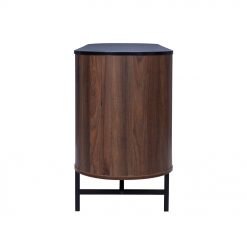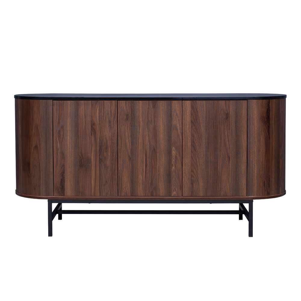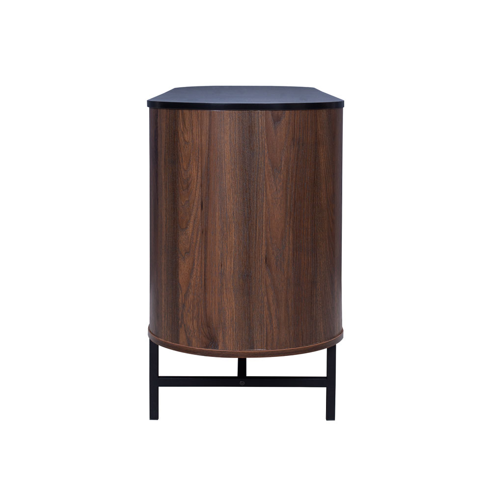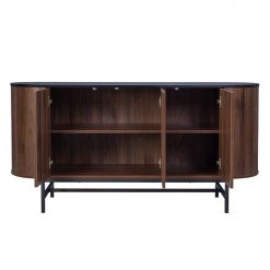 Ο μπουφές Oval ενσαρκώνει την απόλυτη ισορροπία μεταξύ κομψότητας και μοντέρνου σχεδιασμού. Με επένδυση από paper wood σε καρυδί απόχρωση, αποπνέει ζεστασιά και πολυτέλεια, ενώ οι καμπύλες γραμμές του προσθέτουν μια αίσθηση αρμονίας και φινέτσας. Η μαύρη βάση από αλουμίνιο ενισχύει τη σύγχρονη αισθητική του, προσφέροντας σταθερότητα και έναν διακριτικό industrial χαρακτήρα. Ο μπουφές Oval είναι η ιδανική επιλογή για όσους επιθυμούν να προσθέσουν έναν αέρα εκλεπτυσμένου στυλ και λειτουργικότητας στο σαλόνι ή την τραπεζαρία τους.