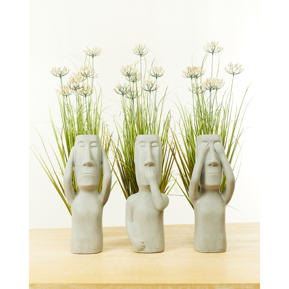 Η διακοσμητική φιγούρα Peru Man Mouth, κατασκευασμένη από γκρί τεχνητή πέτρα, απεικονίζει τη στάση I speak no evil, συμβολίζοντας την έννοια της αποφυγής της αρνητικότητας. Συνδυάζει εύστοχα το ethnic στυλ με τον συμβολισμό ενώ είναι κατάλληλη και για εξωτερικό χώρο. Η διακοσμητική φιγούρα Peru Man Mouth μπορεί να συνδυαστεί με διάφορα στυλ διακόσμησης, κάνοντάς την ιδανική προσθήκη για χώρους που επιθυμούν μια ethnic αλλά και θετική ατμόσφαιρα.