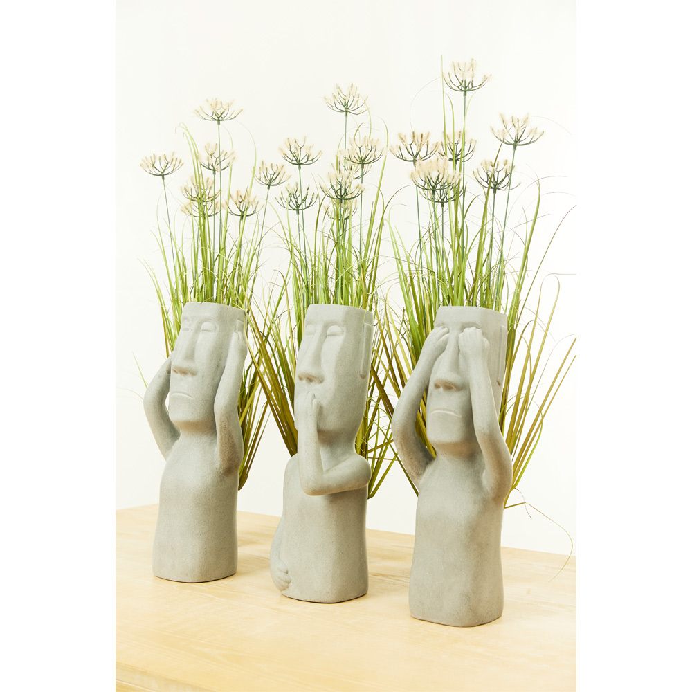 Η διακοσμητική φιγούρα Peru Man See, κατασκευασμένη από γκρί τεχνητή πέτρα, απεικονίζει τη στάση I see no evil, συμβολίζοντας την έννοια της αποφυγής της αρνητικότητας. Συνδυάζει εύστοχα το ethnic στυλ με τον συμβολισμό ενώ είναι κατάλληλη και για εξωτερικό χώρο. Η διακοσμητική φιγούρα Peru Man Ear μπορεί να συνδυαστεί με διάφορα στυλ διακόσμησης, κάνοντάς την ιδανική προσθήκη για χώρους που επιθυμούν μια ethnic αλλά και θετική ατμόσφαιρα.