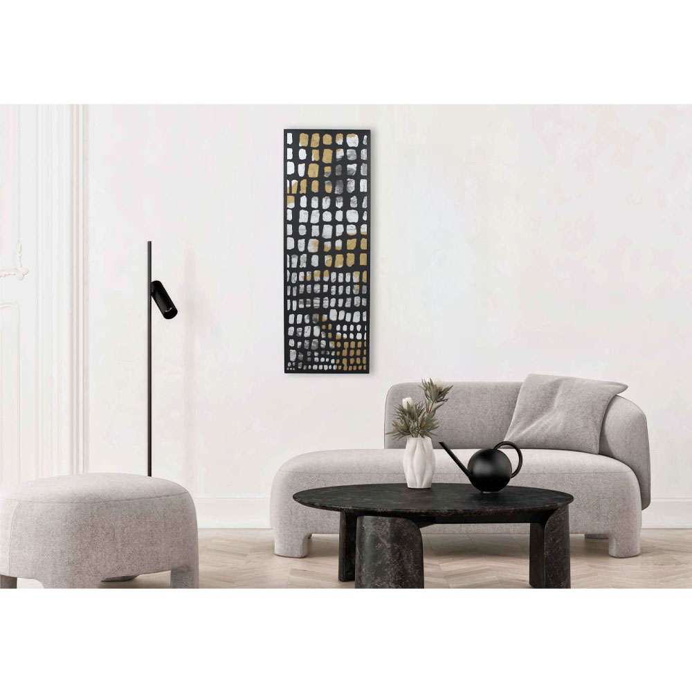 Ο πίνακας Pic συνδυάζει αρμονικά το βιομηχανικό στοιχείο του μετάλλου με την κομψότητα του χρυσού και την καθαρότητα του λευκού, κάνοντάς τον ένα εξαιρετικό διακοσμητικό στοιχείο για κάθε σύγχρονο χώρο. Το χρυσό προσθέτει μία αίσθηση πολυτελείας και φινέτσας ενώ οι λευκές λεπτομέρεις του πίνακα προσφέρουν καθαρότητα και φωτεινότητα, εξισορροπώντας τη δύναμη των άλλων χρωμάτων και στοιχείων. Ο πίνακας Pic είναι ιδανικό για χώρους με minimal ή μοντέρνα διακόσμηση, προσφέροντας μία εκλεπτυσμένη πινελιά σε καθιστικά, γραφεία ή ακόμη και σε υπνοδωμάτια.