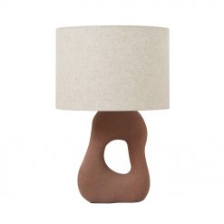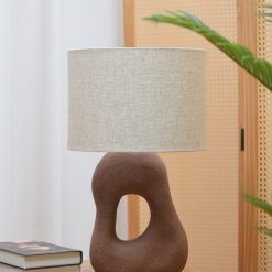 Το επιτραπέζιο φωτιστικό PIERRE ξεχωρίζει για τη γλυπτική του βάση και τη γήινη χρωματική του παλέτα. Η κεραμική βάση σε καφέ απόχρωση δίνει βάθος και χαρακτήρα, ενώ το μπεζ λινό καπέλο απαλύνει το φως και δημιουργεί μια ζεστή, φιλόξενη ατμόσφαιρα. Με διαστάσεις 36?36?58 cm, ταιριάζει ιδανικά σε κονσόλες, side tables ή γωνιές σαλονιού που θέλουν φωτισμό με διακριτική παρουσία και φυσικό, οικείο αποτέλεσμα.