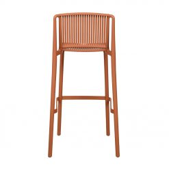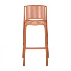 Το σκαμπό Bar Polly συνδυάζει κομψότητα και λειτουργικότητα, αποτελώντας την ιδανική επιλογή για εσωτερικούς και εξωτερικούς χώρους. Η κατασκευή του από πολυπροπυλένιο (PP) σε terracotta απόχρωση προσφέρει ανθεκτικότητα και στυλ, ενώ ο εργονομικός σχεδιασμός του εξασφαλίζει άνεση. Είναι στοιβαζόμενο για εύκολη αποθήκευση και διαθέτει ειδική βαφή με UV προστασία, που εγγυάται αντοχή στον χρόνο και στις καιρικές συνθήκες, ακόμα και υπό έντονη ηλιακή έκθεση.