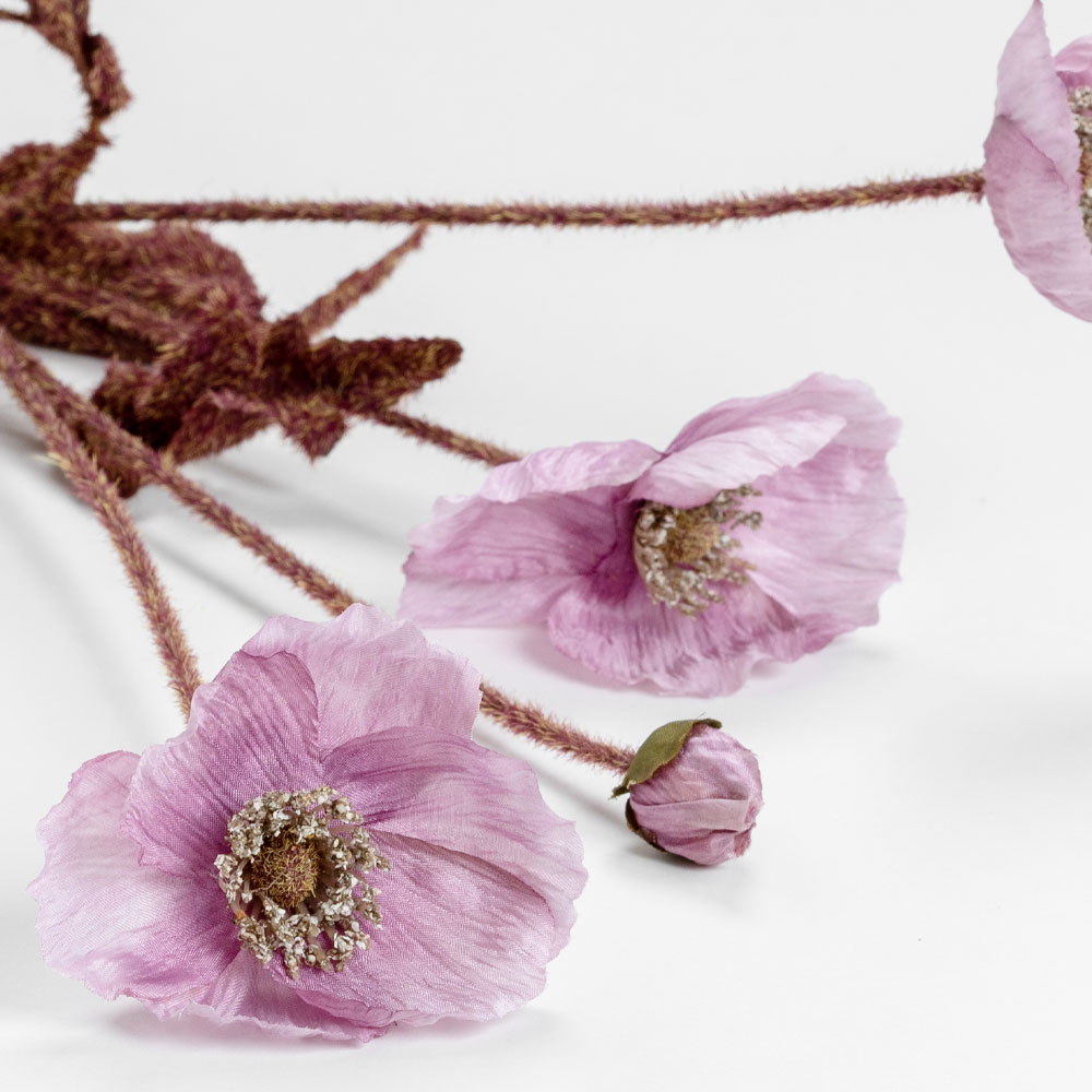 Το λιλά τεχνητό λουλούδι POPPY 60cm προσθέτει έναν ήπιο ρομαντισμό και μια ονειρική αίσθηση σε κάθε διακόσμηση. Ιδανικό για vintage ή shabby-chic συνθέσεις, δένει όμορφα με λευκούς, γκρι και φυσικούς τόνους, καθώς και με διακοσμητικά κλαδιά. Τα πέταλά του, κατασκευασμένα από πολυεστέρα, αποπνέουν ρεαλισμό και φινέτσα. Ιδανικό για δημιουργία ρομαντικών γωνιών σε υπνοδωμάτια, σαλονάκια ή boutique επαγγελματικούς χώρους.