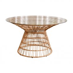 Το τραπέζι Prisma είναι η ιδανική επιλογή για όσους αναζητούν έναν μοναδικό συνδυασμό μοντέρνου design και φυσικής αισθητικής. Η επιφάνειά του από διάφανο γυαλί προσφέρει μια αίσθηση ελαφρότητας και κομψότητας, ενώ αναδεικνύει τη λεπτομέρεια του εντυπωσιακού σκελετού του. Ο σκελετός είναι κατασκευασμένος από ανθεκτικό μέταλλο, επενδυμένο με φυσικό rattan, δημιουργώντας έναν εκλεπτυσμένο συνδυασμό φυσικών υλικών και μοντέρνου σχεδιασμού. Το Prisma ξεχωρίζει για την ελαφρότητα και την αέρινη αίσθησή του, καθιστώντας το ιδανικό για καθιστικούς ή επαγγελματικούς χώρους που θέλουν να συνδυάσουν τη λειτουργικότητα με την αισθητική. Ένα τραπέζι που συνδυάζει την ομορφιά των φυσικών υλικών με τη μοντέρνα διακόσμηση, αναβαθμίζοντας κάθε χώρο με κομψότητα και στυλ.