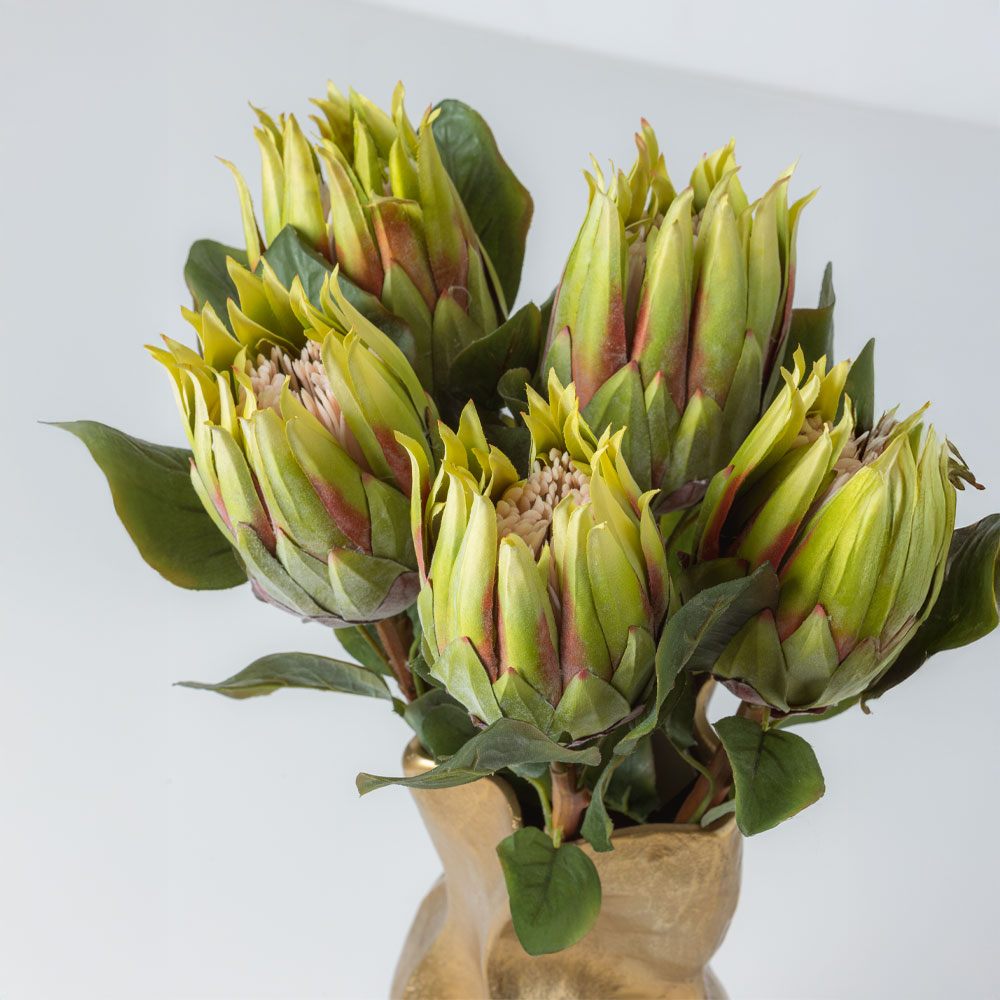 Το πράσινο τεχνητό λουλούδι PROTEAX 68cm αποτελεί την ιδανική επιλογή που θα ανανεώσει εκπληκτικά τη μοντέρνα και μίνιμαλ διακόσμηση κάθε εσωτερικού χώρου. Η ρεαλιστική του υφή και οι ζωντανές πράσινες αποχρώσεις του θα χαρίσουν μια ανανεωτική αύρα στο χώρο που θα εντυπωσιάσει. Μόνο του είτε σε ανθοσύνθεση με λευκά αλλά και πολύχρωμα τεχνητά φυτά θα προσφέρει ένα πιο ήρεμο και μοναδικό στυλ με προσωπικότητα στη διακόσμηση κάθε οικιακού ή επαγγελματικού χώρου.