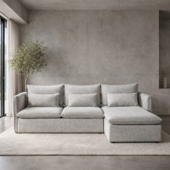 Ο δεξιός γωνιακός καναπές PROUD αποτελεί ιδανική επιλογή για άνεση και στυλ στο καθιστικό. Με ύφασμα chenille σε ανοιχτό γκρι χρώμα και διαστάσεις 258x180x90 εκ.. Ο σκελετός είναι κατασκευασμένος από ξύλο πεύκου, εξασφαλίζοντας σταθερότητα και αντοχή.