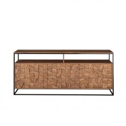 Ο μπουφές Puzzle είναι ένα μοναδικό κομμάτι που συνδυάζει την τέχνη με τη λειτουργικότητα. Κατασκευασμένος από ξύλο ακακίας, αποπνέει φυσική ζεστασιά και εκλεπτυσμένη αισθητική. Η γεωμετρική σχεδίαση στην πρόσοψη προσθέτει μια μοντέρνα πινελιά που εντυπωσιάζει. Η στιβαρή βάση από μαύρο μέταλλο ενισχύει τη σταθερότητα του επίπλου, ενώ δημιουργεί έναν διακριτικό industrial χαρακτήρα. Ο μπουφές Puzzle αποτελεί ιδανική επιλογή για όσους αναζητούν έναν συνδυασμό διαχρονικού στυλ και πρακτικότητας, προσθέτοντας μοναδικότητα σε κάθε χώρο
