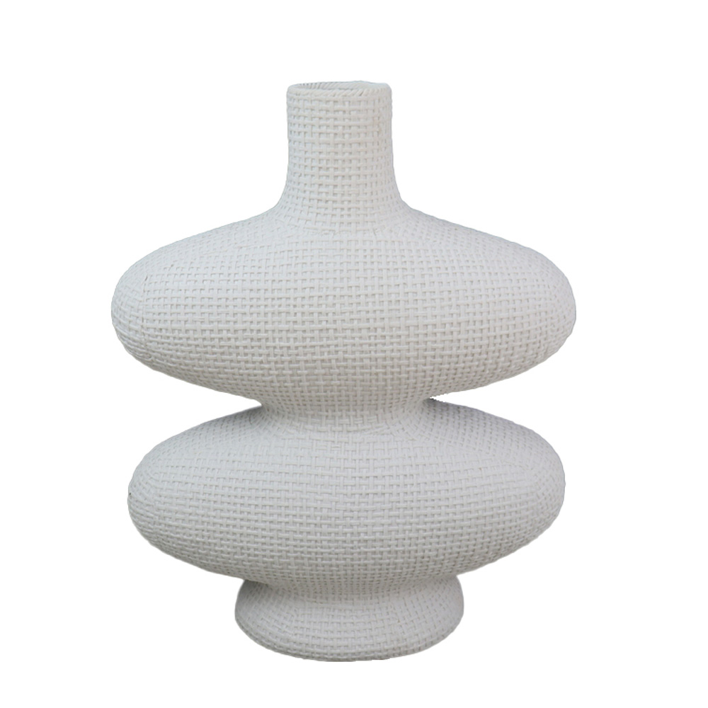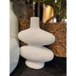 Τα διακοσμητικά βάζα Randi, κατασκευασμένα από ανθεκτικό polyresin, με την ιδιαίτερη ανάγλυφη υφή που θυμίζει γάζα, εντυπωσιάζουν με τις ζεστές καμπύλες και την αρμονική γεωμετρία τους. Οι αποχρώσεις του λευκού, μαύρου και της αγαπημένης terracotta συνδυάζονται τέλεια και μεταξύ τους, αλλά και με άλλα διακοσμητικά αντικείμενα ή βάζα από τη συλλογή μας, ανδεικνύοντας το στυλ σε όλους τους χώρους του σπιτιού ή του γραφείου.