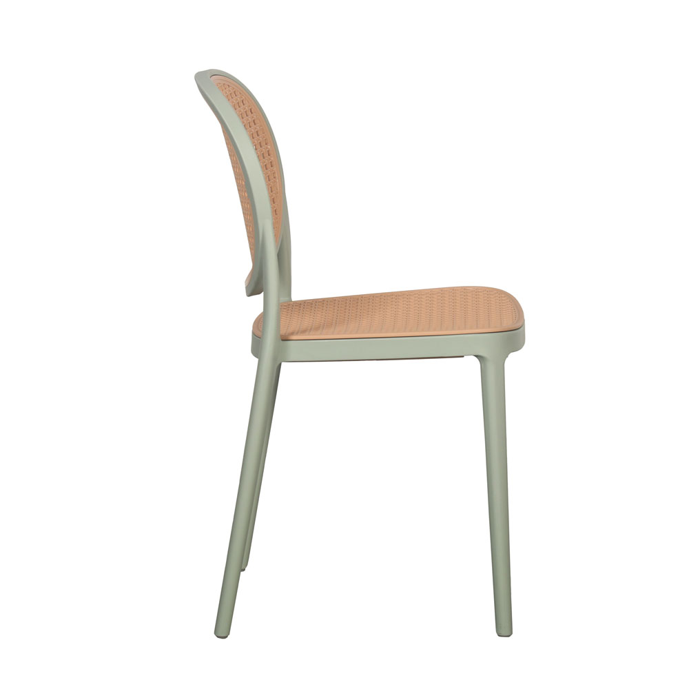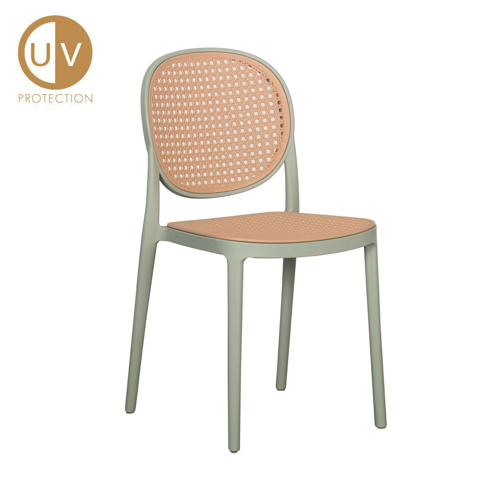 Η καρέκλα Ratti ξεχωρίζει για το κομψό design και την ανθεκτική κατασκευή της, ιδανική τόσο για εσωτερικούς όσο και για εξωτερικούς χώρους. Είναι κατασκευασμένη από πολυπροπυλένιο (PP) σε μέντα και φυσική απόχρωση, προσφέροντας μία εκλεπτυσμένη αισθητική που συνδυάζει το κλασικό με το μοντέρνο. Διαθέτει UV προστασία, εξασφαλίζοντας αντοχή στον χρόνο και στις καιρικές συνθήκες, ακόμα και υπό συνεχή έκθεση στον ήλιο.