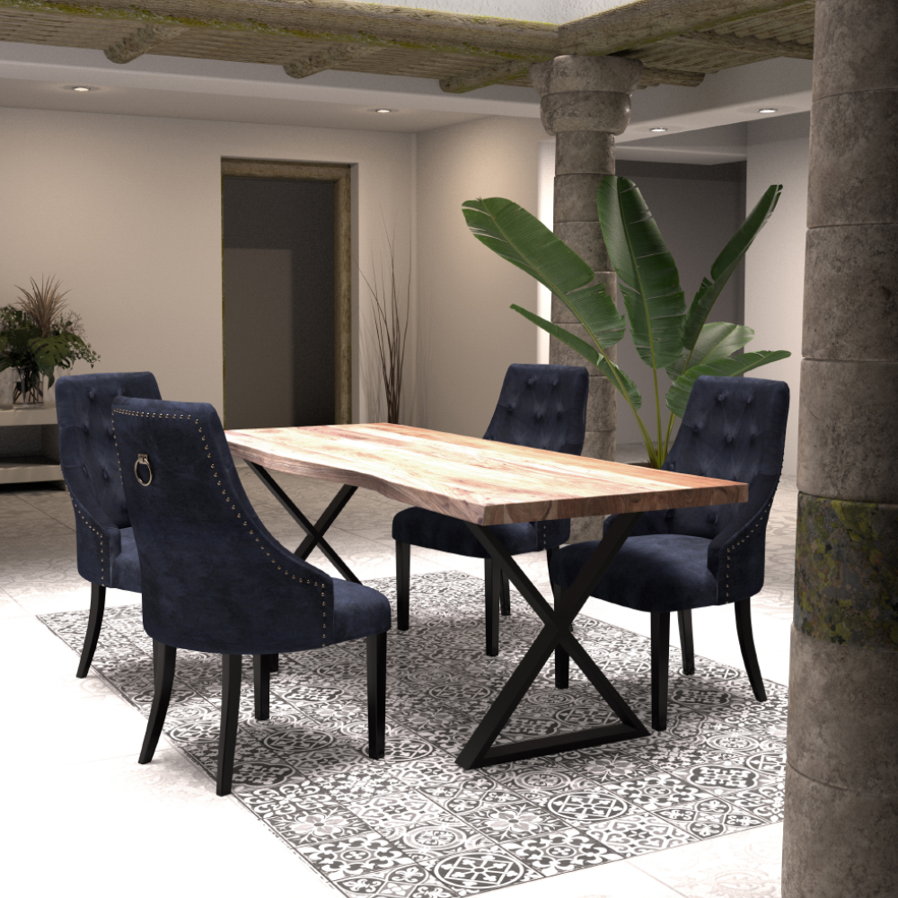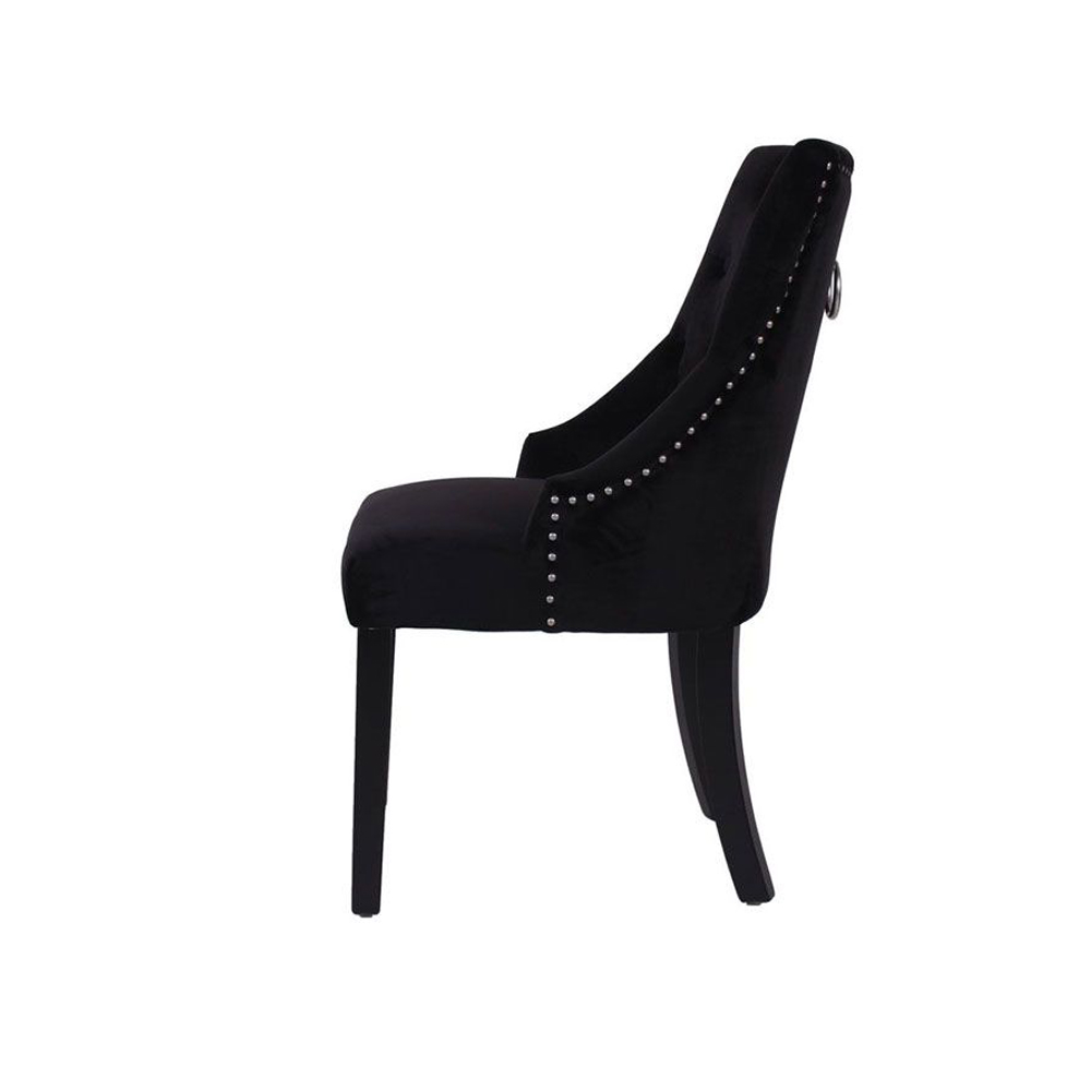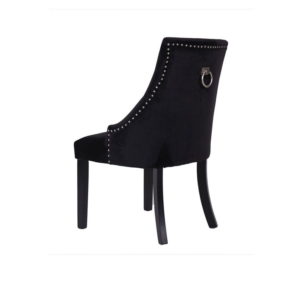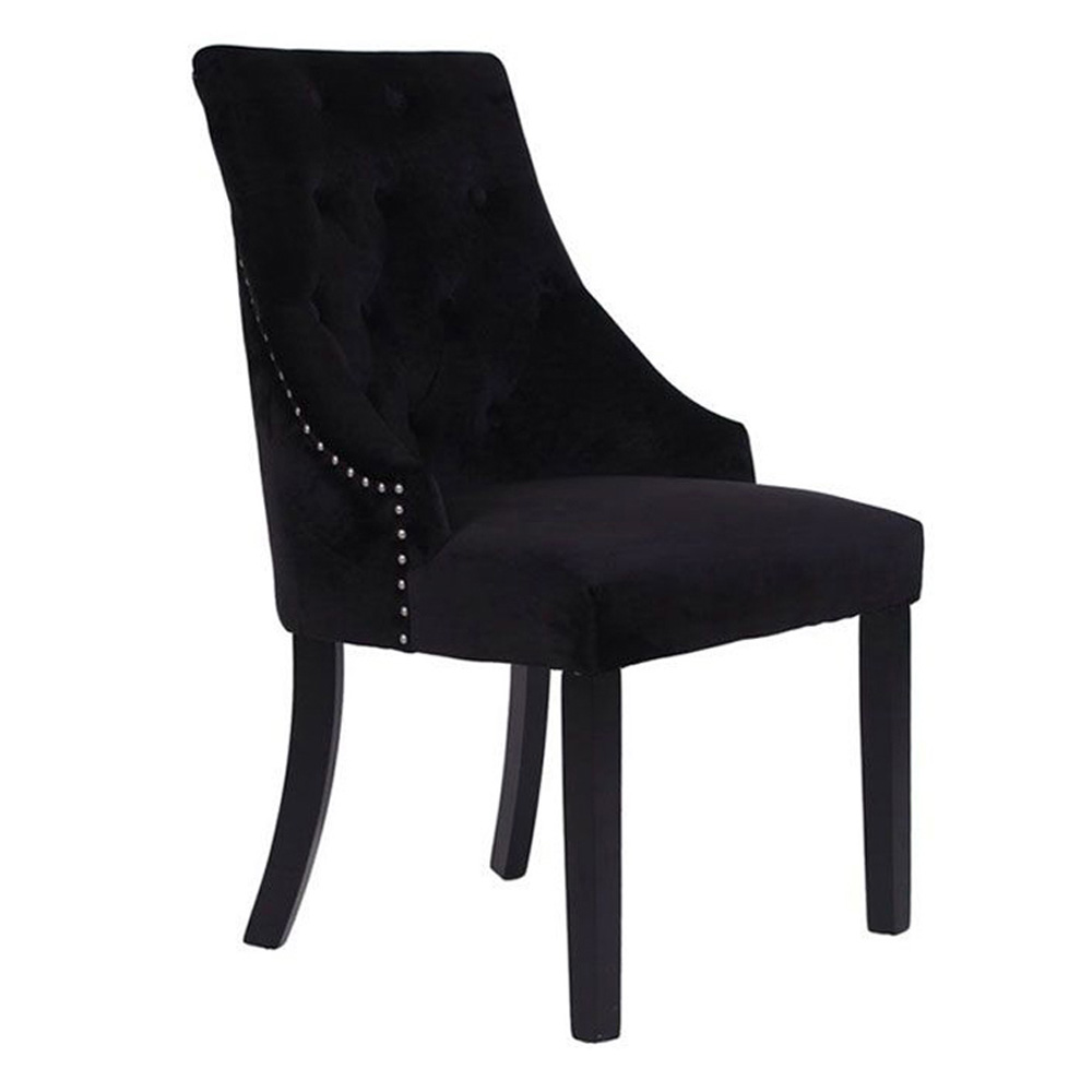Ανακαλύψτε την απόλυτη κομψότητα και την κλασική πολυτέλεια με την καρέκλα Retro, η οποία προσδίδει μια αίσθηση εκλεπτυσμένου στυλ σε κάθε χώρο. Κατασκευασμένη με μαύρο βελούδινο ύφασμα υψηλής ποιότητας που αποπνέει άνεση και πολυτέλεια, η καρέκλα αυτή διακρίνεται για το μοναδικό της design. Ο στιβαρός σκελετός από μαύρο ξύλο rubberwood συνδυάζει την ανθεκτικότητα με την αισθητική, εξασφαλίζοντας διαχρονική αντοχή και στήριξη. Η πλάτη της καρέκλας κοσμείται με ένα κομψό διακοσμητικό χερούλι, προσδίδοντας μια πινελιά πολυτέλειας και πρακτικότητας. Το χερούλι όχι μόνο ενισχύει την αισθητική της καρέκλας με την εκλεπτυσμένη του παρουσία, αλλά προσφέρει και λειτουργικότητα, διευκολύνοντας τη μετακίνηση και τη ρύθμισή της στον χώρο. Αυτή η λεπτομέρεια καθιστά την καρέκλα Retro ιδανική επιλογή για όσους αναζητούν ένα έπιπλο που συνδυάζει άψογα την κομψότητα με την πρακτικότητα.