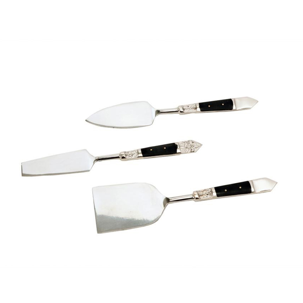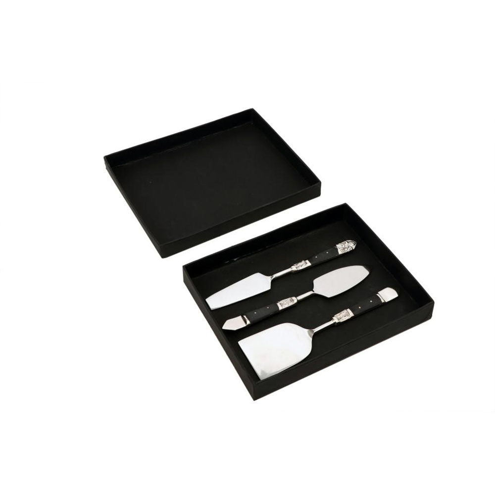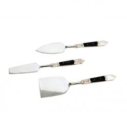 Το ROYAL σετ σερβιρίσματος τυριών είναι σχεδιασμένο για elegant παρουσιάσεις, με minimal μαύρη λαβή και στιβαρή ατσάλινη κατασκευή. Λειτουργεί υπέροχα σε cheese boards και επίσημες φιλοξενίες. Ένα κομψό και σύγχρονο εργαλείο σερβιρίσματος.