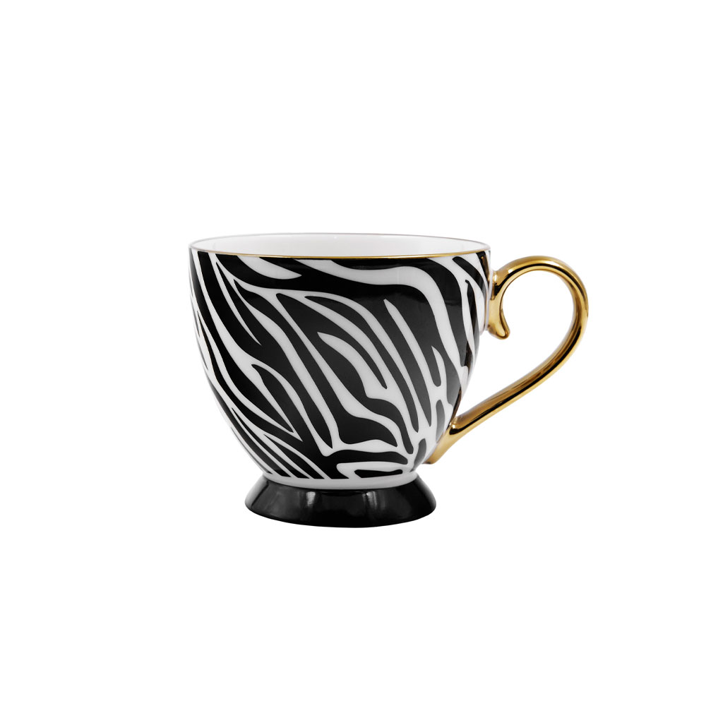 Η κούπα SAFARI παρουσιάζει ένα εντυπωσιακό μοτίβο σε λευκή πορσελάνη New Bone China, συνδυασμένο με μαύρες λεπτομέρειες και χρυσό τελείωμα. Ο σχεδιασμός της εμπνέεται από γραμμές και μοτίβα της άγριας φύσης, προσφέροντας ένα τολμηρό αλλά εκλεπτυσμένο αισθητικό αποτέλεσμα. Η πορσελάνη χαρίζει άνεση και αντοχή, ενώ το μοτίβο της προσθέτει ξεχωριστό χαρακτήρα στο τραπέζι. Ιδανική για όσους αγαπούν το μοντέρνο design με artistic πινελιές.