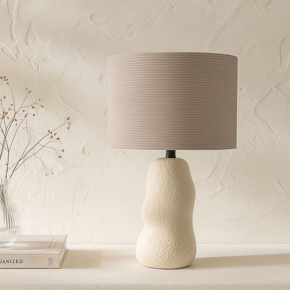 Το επιτραπέζιο φωτιστικό SANG συνδυάζει κεραμική βάση σε ζεστή μπεζ απόχρωση με καπέλο από βελούδινο ύφασμα, δημιουργώντας μια αίσθηση διακριτικής πολυτέλειας. Η υφή του βελούδου μαλακώνει το φως και προσφέρει μια ατμόσφαιρα χαλάρωσης και ηρεμίας. Οι καμπύλες του σχεδιασμού του το κάνουν ιδανικό για υπνοδωμάτιο ή καθιστικό, όπου λειτουργεί ως ένα κομψό στοιχείο διακόσμησης. Το SANG δεν φωτίζει απλώς τον χώρο αλλά τον αναβαθμίζει αισθητικά.