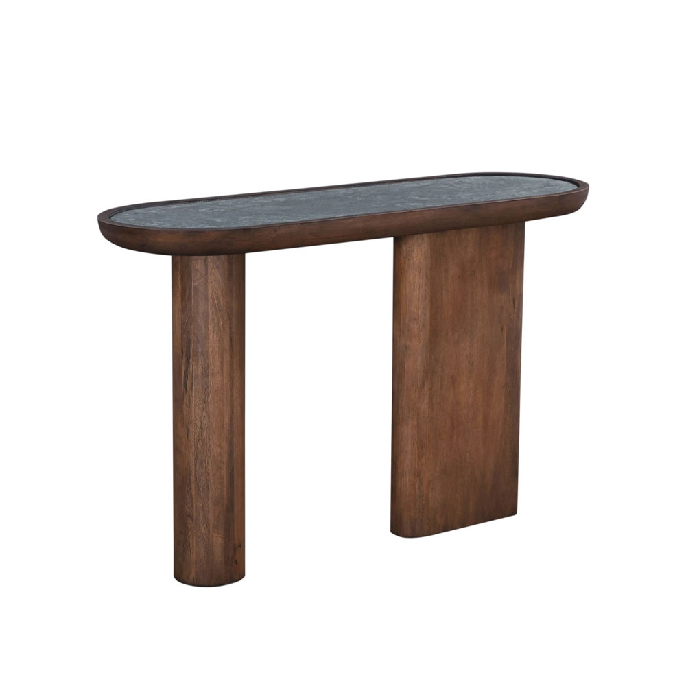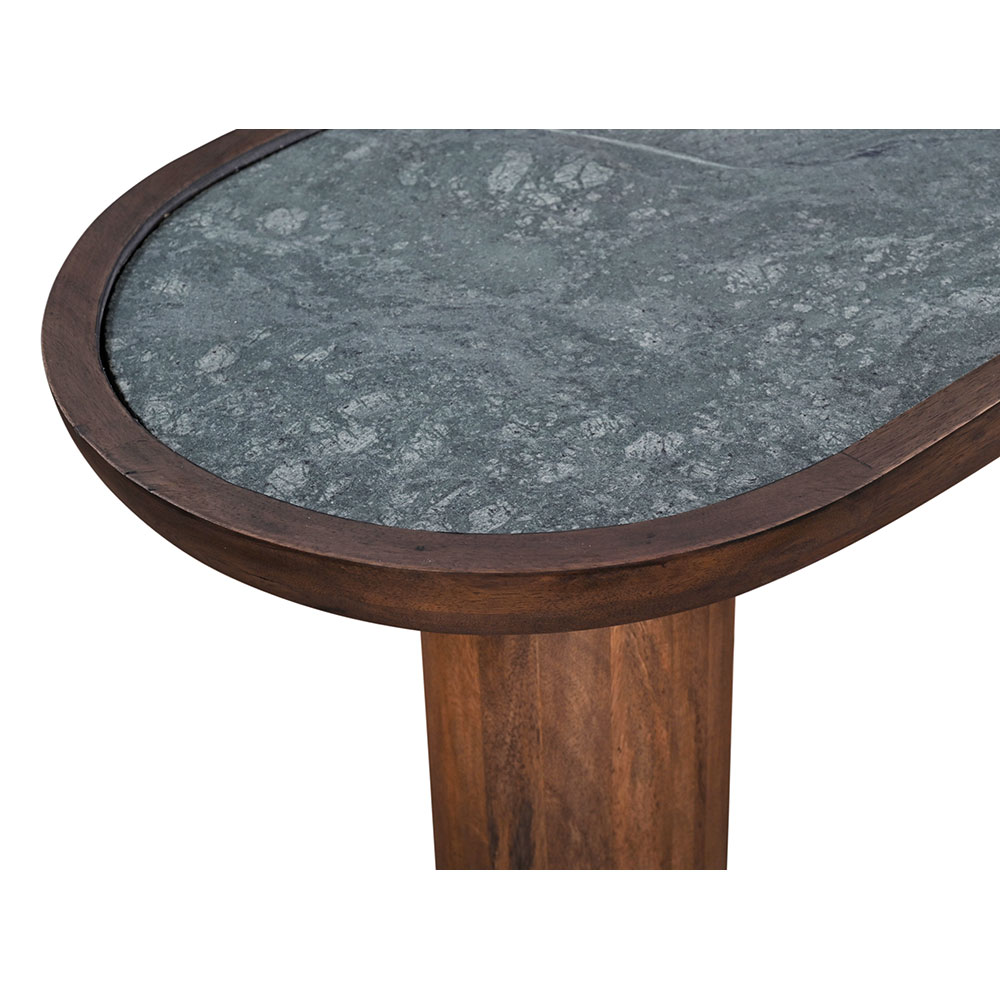 Αναδείξτε τη διαχρονική κομψότητα και τη φυσική γοητεία του χώρου σας με την κονσόλα Savy. Κατασκευασμένη από ξύλο Mango σε πλούσια καρυδί απόχρωση, αποπνέει ζεστασιά και φυσικότητα, ενώ η επιφάνειά της από πέτρα σε πράσινο χρώμα προσθέτει έναν μοναδικό και εκλεπτυσμένο χαρακτήρα. Η κονσόλα Savy είναι ιδανική για την είσοδο, το καθιστικό ή οποιοδήποτε σημείο χρειάζεται μια ιδιαίτερη πινελιά. Με την εξαιρετική ποιότητα κατασκευής και τον μοναδικό σχεδιασμό της, συνδυάζει πρακτικότητα και υψηλή αισθητική, προσδίδοντας στον χώρο σας έναν αέρα πολυτέλειας και φυσικής ομορφιάς.