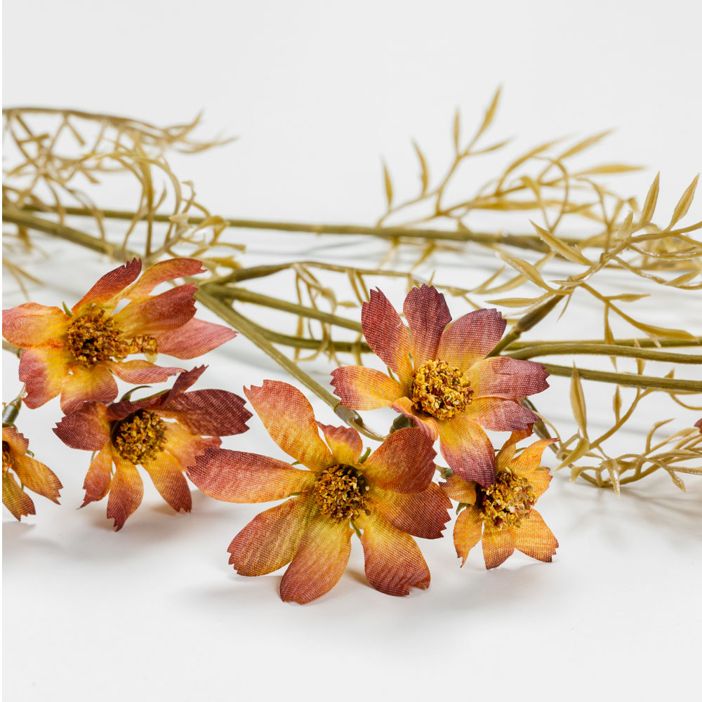 Το μωβ-πορτοκαλί τεχνητό λουλούδι SKY COSMOS 79cm προσθέτει βάθος, μυστήριο και μια αίσθηση πολυτέλειας στη διακόσμηση κάθε χώρου. Ιδανική επιλογή για elegant, boho διακόσμηση, συνδυάζεται άψογα με ουδέτερες αποχρώσεις. Η υψηλής ποιότητας κατασκευή από πολυεστέρα χαρίζει ρεαλισμό και υφή στα πέταλα, αναδεικνύοντας το λουλούδι ως statement διακοσμητικό. Ιδανικό τόσο για οικιακή όσο και για επαγγελματική χρήση.