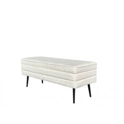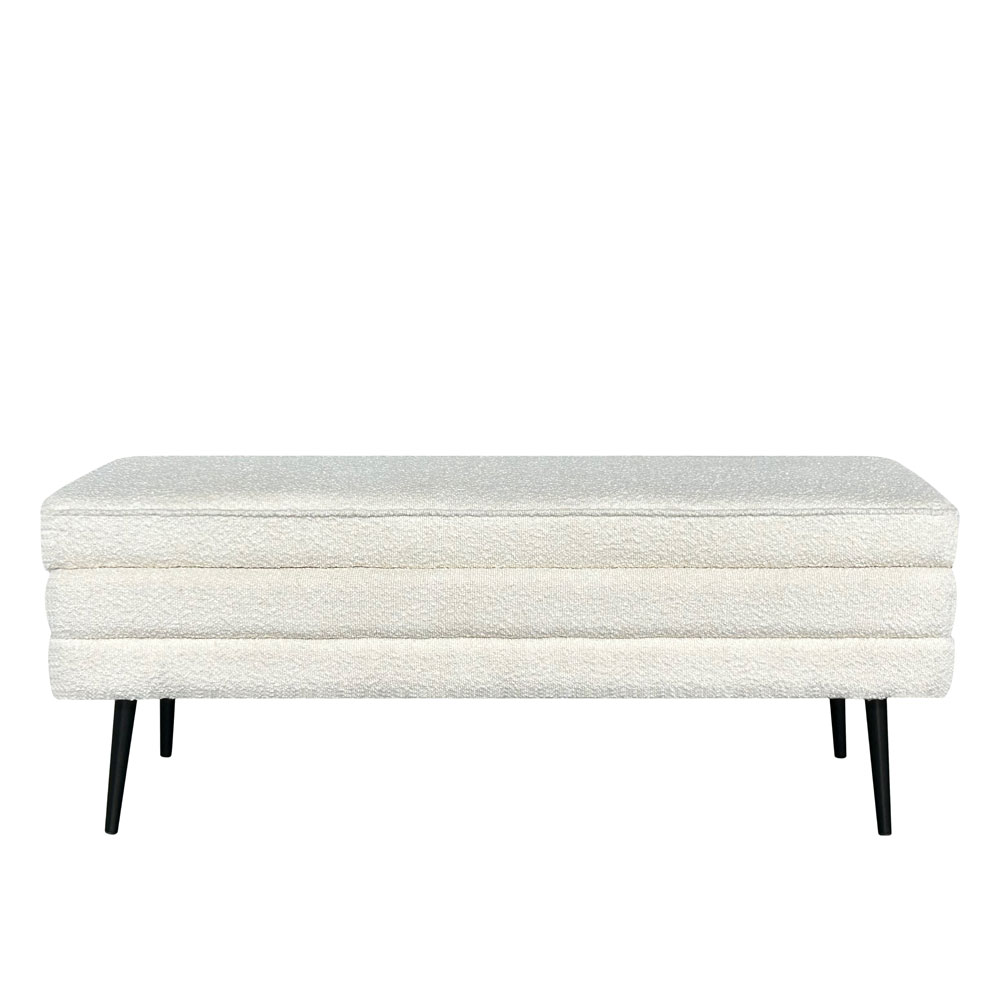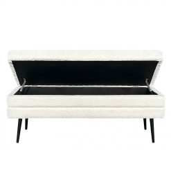 Το σκαμπό Slices συνδυάζει κομψότητα και πρακτικότητα, προσφέροντας άφθονο αποθηκευτικό χώρο. Κατασκευασμένο με σκελετό από plywood και επενδυμένο με ύφασμα μπουκλέ σε λευκή απόχρωση, το σκαμπό αυτό προσφέρει άνεση και μία σύγχρονη αίσθηση φρεσκάδας στον χώρο σας. Τα μαύρα μεταλλικά πόδια του προσδίδουν μοντέρνα και ελκυστική όψη, κάνοντάς το ιδανικό για κάθε σύγχρονο σαλόνι, υπνοδωμάτιο ή χώρο. Το σκαμπό Slices είναι η ιδανική επιλογή για όσους επιθυμούν ένα κομμάτι επίπλου που συνδυάζει λειτουργικότητα με μοντέρνα αισθητική.