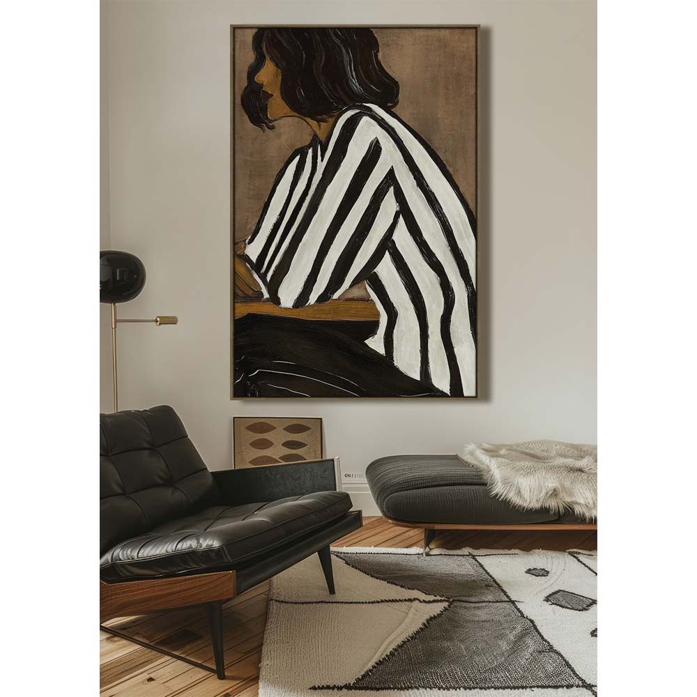 Ο πίνακας STILL BEAUTY αποτυπώνει μια γυναικεία φιγούρα σε απόλυτη ακινησία, δημιουργώντας μια στιγμή σιωπηλής κομψότητας. Οι μπεζ και μαύρες αντιθέσεις προσθέτουν βάθος και οπτικό ενδιαφέρον. Ταιριάζει σε minimal ή σύγχρονα interiors, σε halls, καθιστικά ή επαγγελματικούς χώρους όπου χρειάζεται μια διακριτική αλλά εκλεπτυσμένη παρουσία.