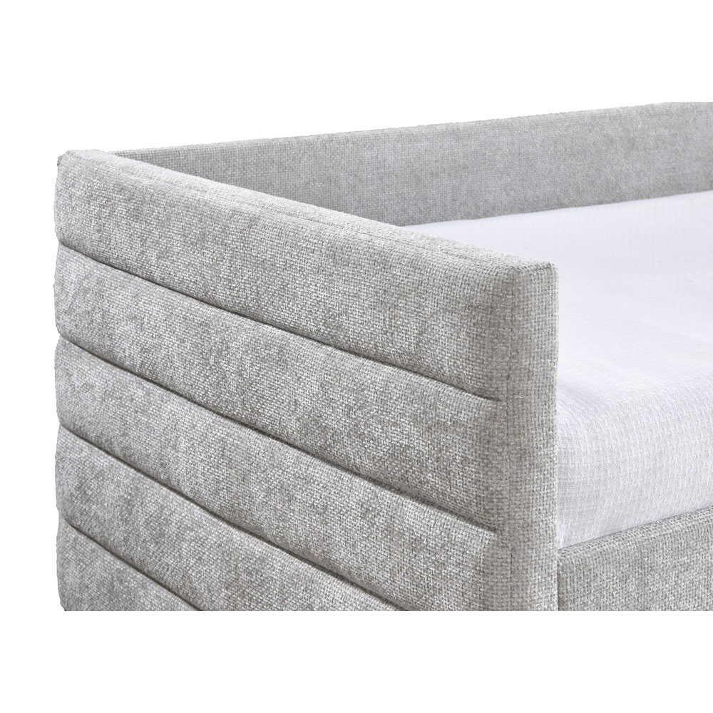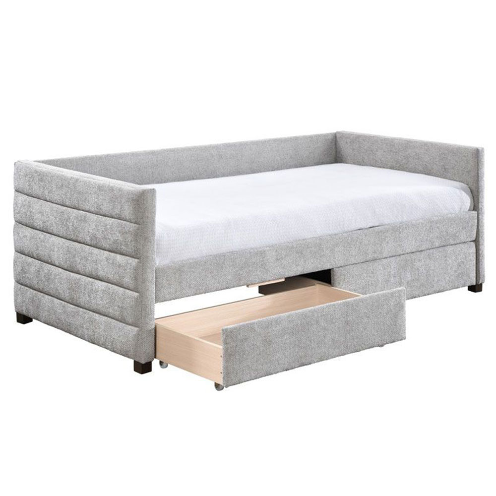 Προσθέστε στυλ και πρακτικότητα στον χώρο σας με τον κομψό καναπέ-κρεβάτι Sueno. Επενδυμένος με ύφασμα Chenille σε ανοιχτή γκρι απόχρωση, αποπνέει διακριτική φινέτσα και ζεστασιά. Ο ανθεκτικός σκελετός από MDF προσφέρει σταθερότητα και αντοχή στη χρήση. Διαθέτει δύο ευρύχωρα συρτάρια αποθήκευσης, ιδανικά για την οργάνωση αντικειμένων, προσφέροντας επιπλέον λειτουργικότητα. Ιδανικός για χώρους που συνδυάζουν την άνεση με τη σύγχρονη αισθητική. Το στρώμα δεν περιλαμβάνεται. Προτεινόμενο στρώμα: 42-0000 MONDE H21cm ΣΤΡΩΜΑ ΛΕΥΚΟ (90×190) η’ 41-0000 FILOS H20cm ΣΤΡΩΜΑ ΛΕΥΚΟ (90×190).