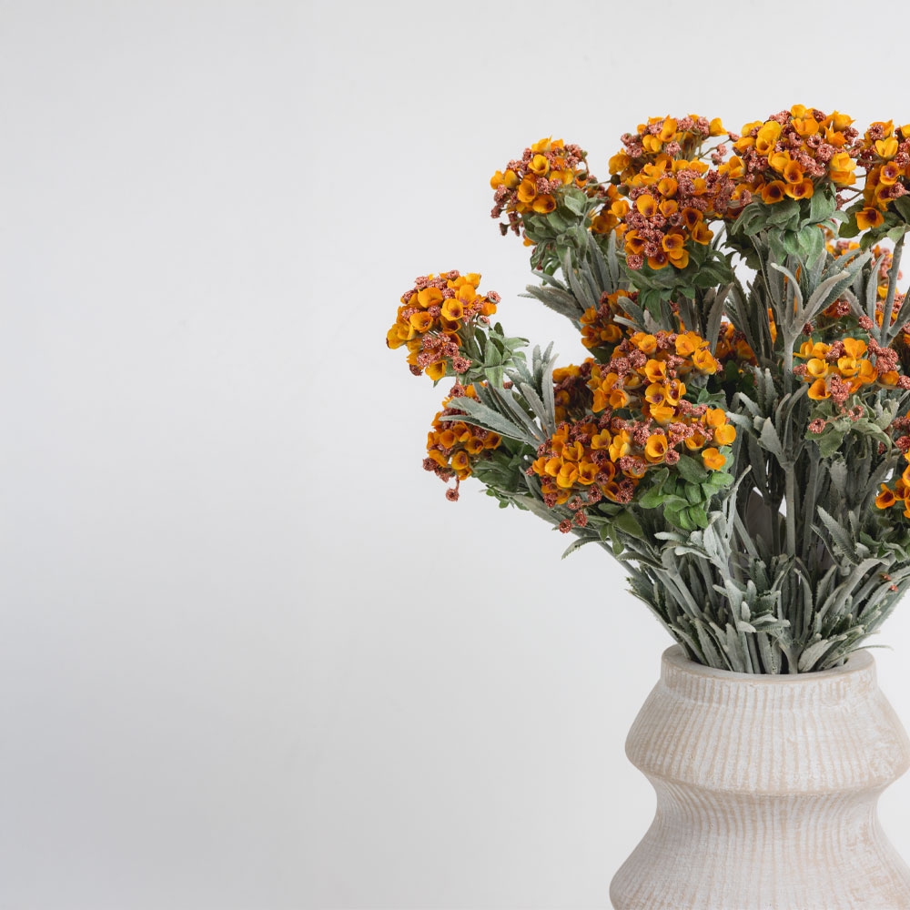 Το πορτοκαλί τεχνητό λουλούδι SWEET ALYSSUM 78cm με πράσινα φύλλα είναι η ιδανική επιλογή για μοντέρνες και boho διακοσμήσεις που θέλουν ζωντάνια και κίνηση. Κατασκευασμένο από polyester υψηλής ποιότητας, προσφέρει φυσική εμφάνιση και ανθεκτικότητα χωρίς φροντίδα. Ιδανικό για πολύχρωμες ανθοσυνθέσεις, βάζα και διακοσμητικά που μαγνητίζουν τα βλέμματα.
