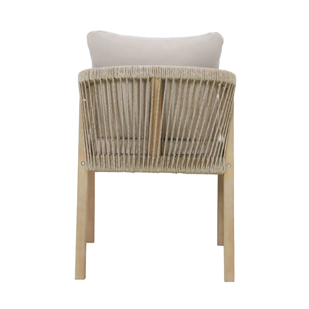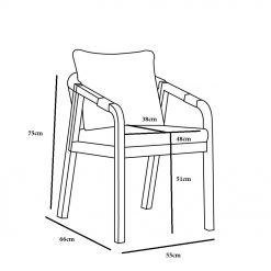 σε απαλή μπεζ απόχρωση, αποπνέει μια αίσθηση ζεστασιάς και άνεσης. Η στιβαρή βάση της, κατασκευασμένη από ξύλο ακακίας σε ανοιχτόχρωμη απόχρωση ξύλου teak, προσδίδει διαχρονική ανθεκτικότητα και μια φυσική αισθητική που ταιριάζει σε κάθε στυλ διακόσμησης. Ιδανική για εσωτερικούς ή εξωτερικούς χώρους, η καρέκλα Terrazzo αποτελεί την τέλεια επιλογή για όσους αναζητούν έναν διακριτικό συνδυασμό λειτουργικότητας και κομψότητας.