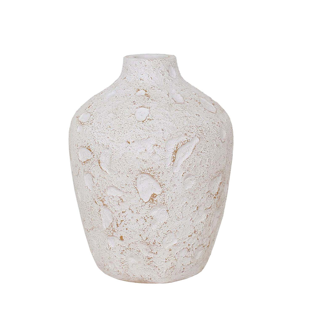 Το διακοσμητικό βάζο THASSOS ξεχωρίζει για την ανάγλυφη υφή του και το φυσικό χρώμα σε λευκές και μπεζ αποχρώσεις, που παραπέμπουν σε πέτρα θαλάσσης. Κατασκευασμένο από ανθεκτικό υλικό MgO, αποτελεί ιδανική επιλογή για να αναδείξει κάθε σύγχρονο ή μεσογειακό χώρο με μία γήινη, αυθεντική αίσθηση. Με ύψος 40 cm, στέκεται επιβλητικά μόνο του ή σε συνδυασμό με άλλα διακοσμητικά.