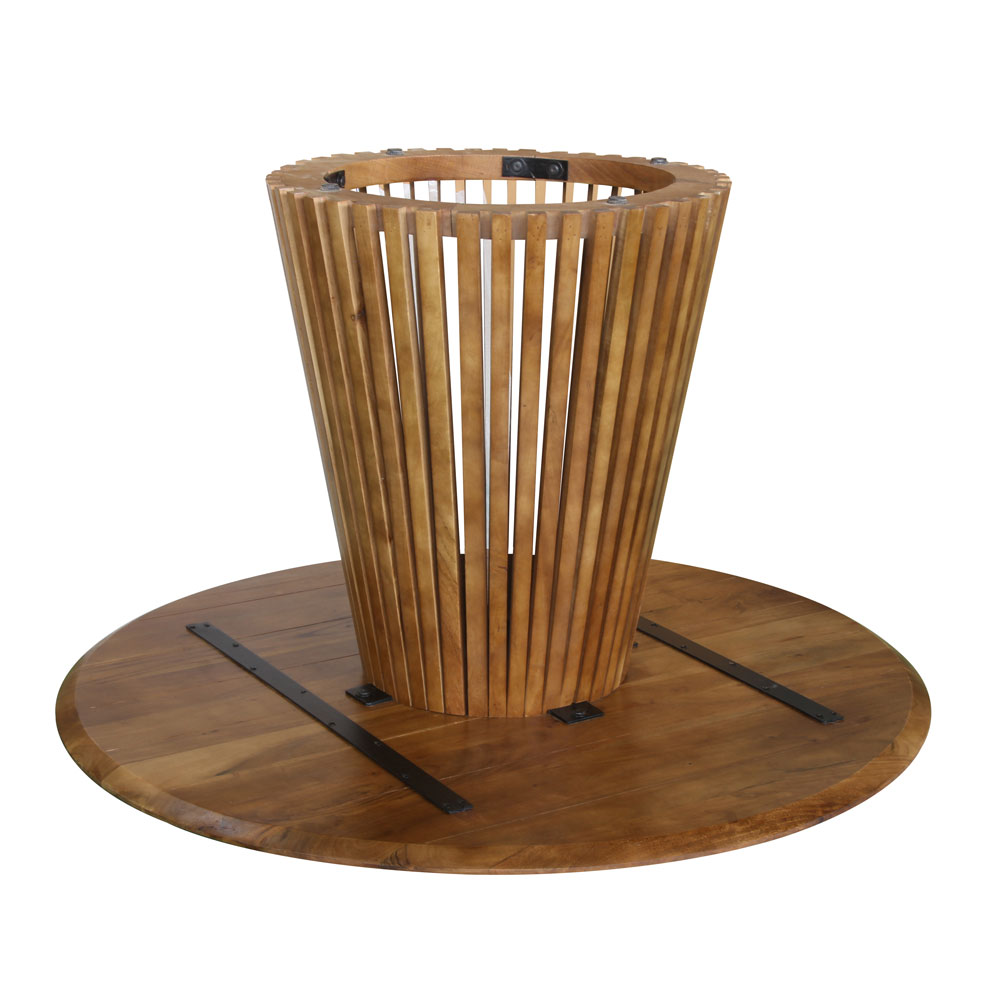 Το τραπέζι TORRE συνδυάζει φυσικά υλικά με εκλεπτυσμένο σχεδιασμό. Η στρογγυλή επιφάνεια από ξύλο ακακίας σε απόχρωση καρυδί δένει αρμονικά με τη βάση τύπου “πύργου”, η οποία αποτελείται από κατακόρυφες ξύλινες ράβδους που δημιουργούν αίσθηση ελαφρότητας και διαφάνειας. Με διάμετρο 130 cm, είναι ιδανικό για καθημερινή χρήση και ιδιαίτερες περιστάσεις. Ένα τραπέζι που παντρεύει την τεχνική κατασκευή με φυσική ομορφιά.