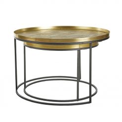 Το σετ 2 τραπεζιών σαλονιού Totale είναι η ιδανική επιλογή για να προσθέσετε μια διακριτική πολυτέλεια στο χώρο σας. Με επιφάνειες σε ορειχάλκινο αντικέ φινίρισμα, αυτά τα τραπέζια αποπνέουν μια ζεστή, κομψή αισθητική που ταιριάζει απόλυτα σε μοντέρνα ή βιομηχανικά περιβάλλοντα. Οι μαύρες μεταλλικές βάσεις με τις απλές, καθαρές γραμμές ενισχύουν τη σταθερότητα και δίνουν έναν μίνιμαλ, σύγχρονο τόνο. Ιδανικό για να φιλοξενήσει διακοσμητικά αντικείμενα ή καθημερινά αξεσουάρ, το σετ Totale συνδυάζει απόλυτα λειτουργικότητα και αισθητική, προσφέροντας μια κομψή πινελιά σε κάθε σαλόνι.