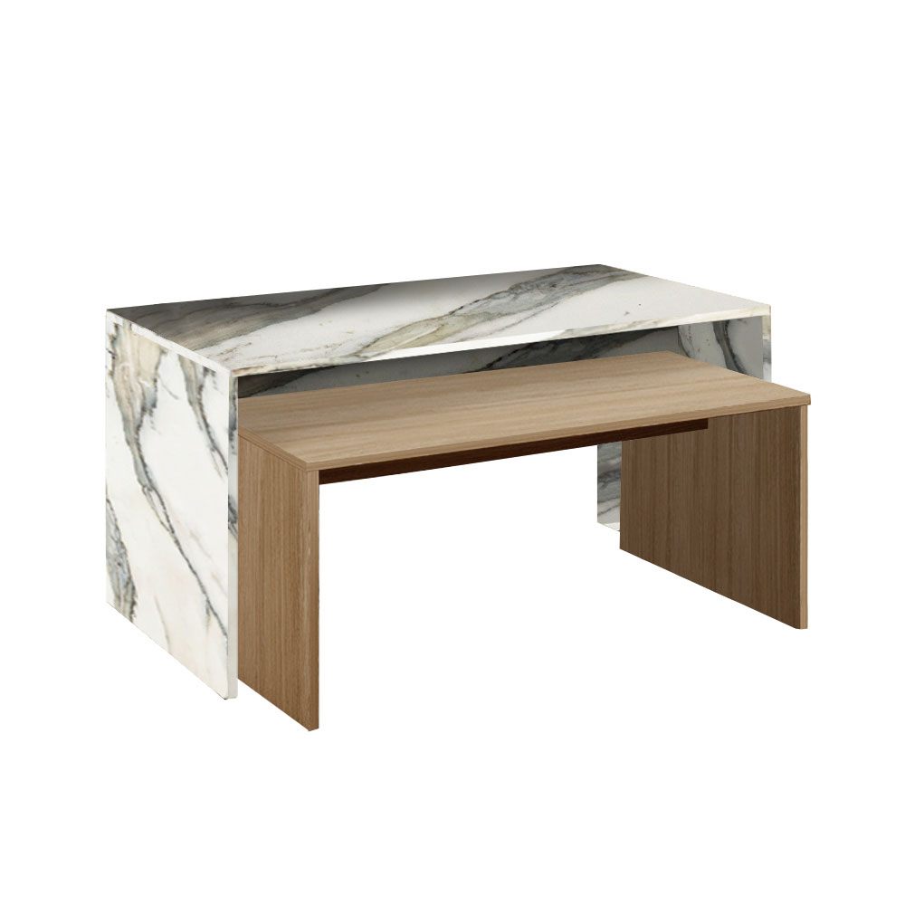 Το τραπεζάκι σαλονιού Tunusia είναι ένα σύγχρονο και ευέλικτο κομμάτι που συνδυάζει τη ζεστασιά του ξύλου με την κομψότητα του μαρμάρου. Οι καθαρές γραμμές και ο σχεδιασμός με δύο υλικά, εφέ ξύλου δρυός και το λευκό μαρμάρινο σχέδιο, δημιουργούν μία μοντέρνα αλλά και διαχρονική αισθητική. Ο ανοιχτός σχεδιασμός του προσφέρει ευελιξία, ιδανικό για τη διακόσμηση με αξεσουάρ ή λειτουργικά αντικείμενα όπως περιοδικά και δίσκους. Είτε σε ένα μίνιμαλ είτε σε ένα κλασικό σαλόνι, το τραπεζάκι Tunusia θα ξεχωρίσει ως μια κομψή προσθήκη σε οποιονδήποτε χώρο.