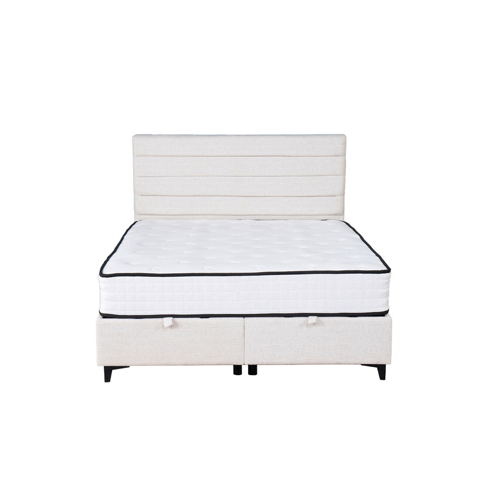 Αναβαθμίστε το υπνοδωμάτιό σας με το μοντέρνο κρεβάτι με στρώμα UTOPIA. Επενδυμένο με ύφασμα τύπου μπουκλέ, προσφέρει διαχρονική φινέτσα και άνεση. Διαθέτει αποθηκευτικό χώρο, μεταλλικό σκελετό υψηλής αντοχής και αντικραδασμική κατασκευή χωρίς τριγμούς. Η επιφάνειά του είναι επίπεδη, ενιαία και αντιολισθητική, ιδανική για κάθε στρώμα. Το στρώμα UTOPIA προσφέρει άψογη στήριξη με 5 ζώνες ανεξάρτητων ελατηρίων (233 ελατήρια/τ.μ.) και Memory Foam 50DNS που προσαρμόζεται στο σώμα. Το πλεκτό, αντιβακτηριδιακό ύφασμα απορροφά την υγρασία, ενώ ο κυματιστός αφρός εξασφαλίζει σωστό αερισμό και θερμοκρασία. Άνεση και πολυτέλεια σε μια ολοκληρωμένη πρόταση ύπνου.