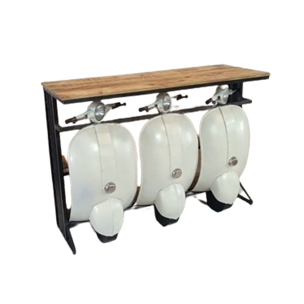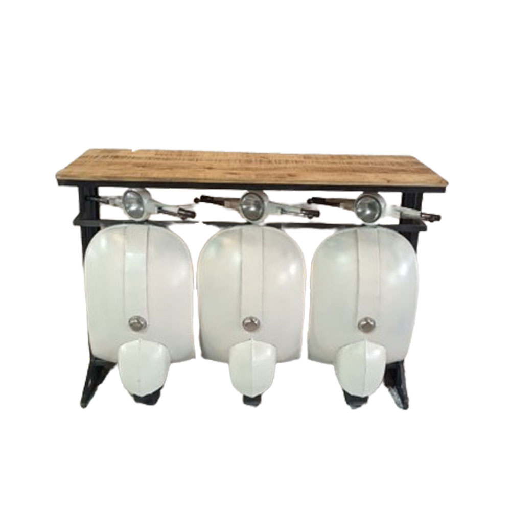 Αναδείξτε την πρωτοτυπία και το vintage στυλ του χώρου σας με την κονσόλα Vespa. Η εντυπωσιακή της επιφάνεια, κατασκευασμένη από φυσικό ξύλο Mango, προσδίδει ζεστασιά και φυσική αίσθηση, ενώ ο σκελετός από κρεμ λευκό μέταλλο, εμπνευσμένος από τη χαρακτηριστική σχεδίαση της Vespa, χαρίζει μια παιχνιδιάρικη και μοναδική πινελιά. Η κονσόλα Vespa είναι ιδανική για χώρους που αναζητούν έναν ιδιαίτερο χαρακτήρα και μια ξεχωριστή προσωπικότητα. Συνδυάζει πρακτικότητα και design, αποτελώντας μια κομψή επιλογή για την είσοδο, το σαλόνι ή επαγγελματικούς χώρους με ιδιαίτερο ύφος. Ένα έπιπλο που ξεχωρίζει και τραβά τα βλέμματα.