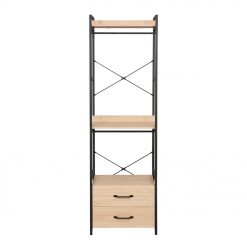Η ντουλάπα Xenia είναι η ιδανική λύση για να οργανώσετε τα ρούχα και τα αξεσουάρ σας με στυλ και πρακτικότητα. Κατασκευασμένη από μελαμίνη και ανθεκτικό μεταλλικό σκελετό ηλεκτροστατικής βαφής, συνδυάζει τη στιβαρότητα με τη μοντέρνα αισθητική. Διαθέτει ανοιχτά ράφια, ράγα κρεμάσματος για ρούχα και δύο ευρύχωρα συρτάρια στη βάση, προσφέροντας άπλετο χώρο για την αποθήκευση και προβολή των αντικειμένων σας. Με τον industrial σχεδιασμό της, η Xenia προσθέτει μια μοντέρνα πινελιά στον χώρο σας, ενώ ταυτόχρονα παρέχει ευκολία στη χρήση και διαχρονική αντοχή.